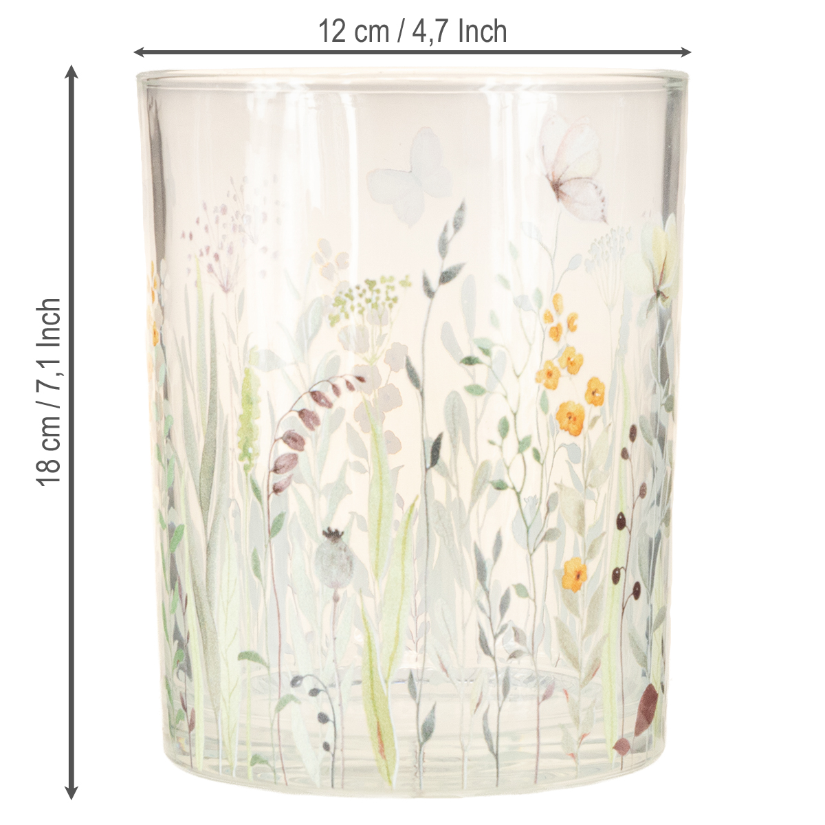 Deko Windlicht Glasmotiv Schmetterlingswiese für stilvolle Wohnakzente 18cm 2St