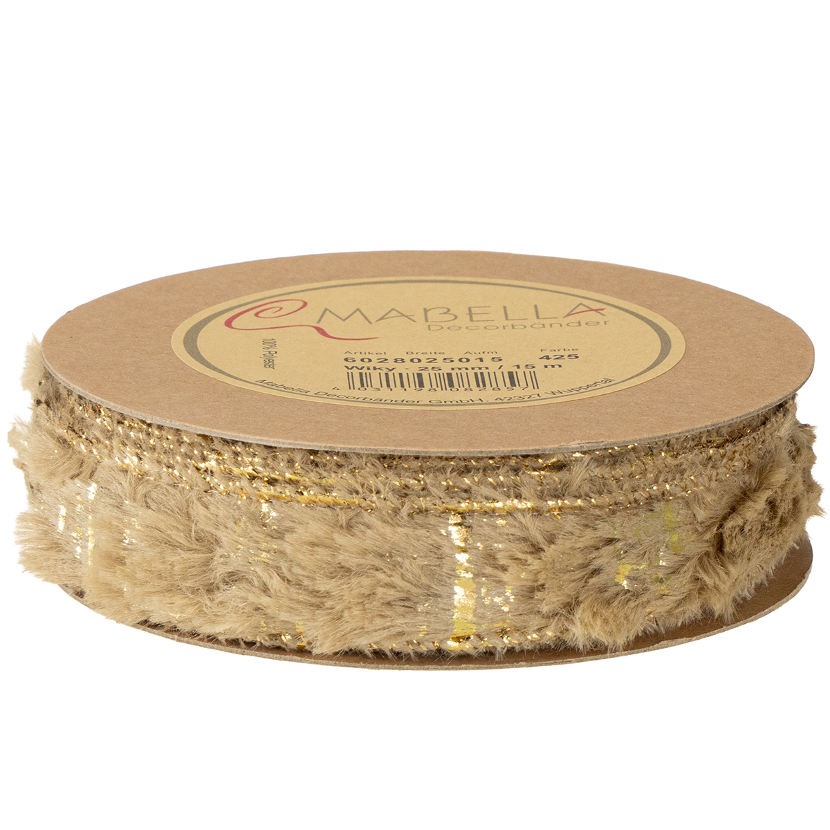 Produktname: Dekoband mit Fell Schmuckband Kunstfell Braun Gold 25mm 15m