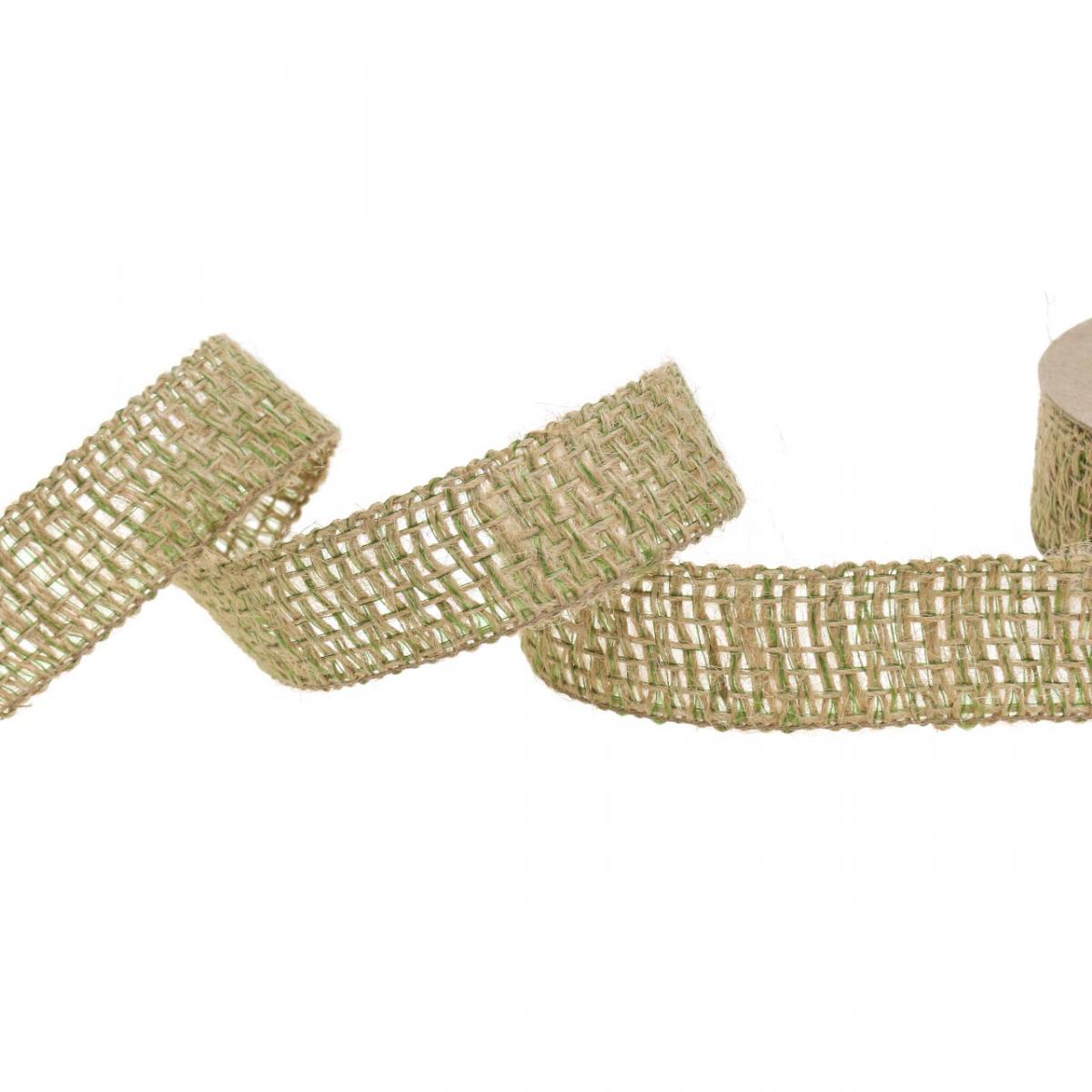 Produktname: Dekoband Jute Grün, Natur 25mm Juteband zum Dekorieren 10m