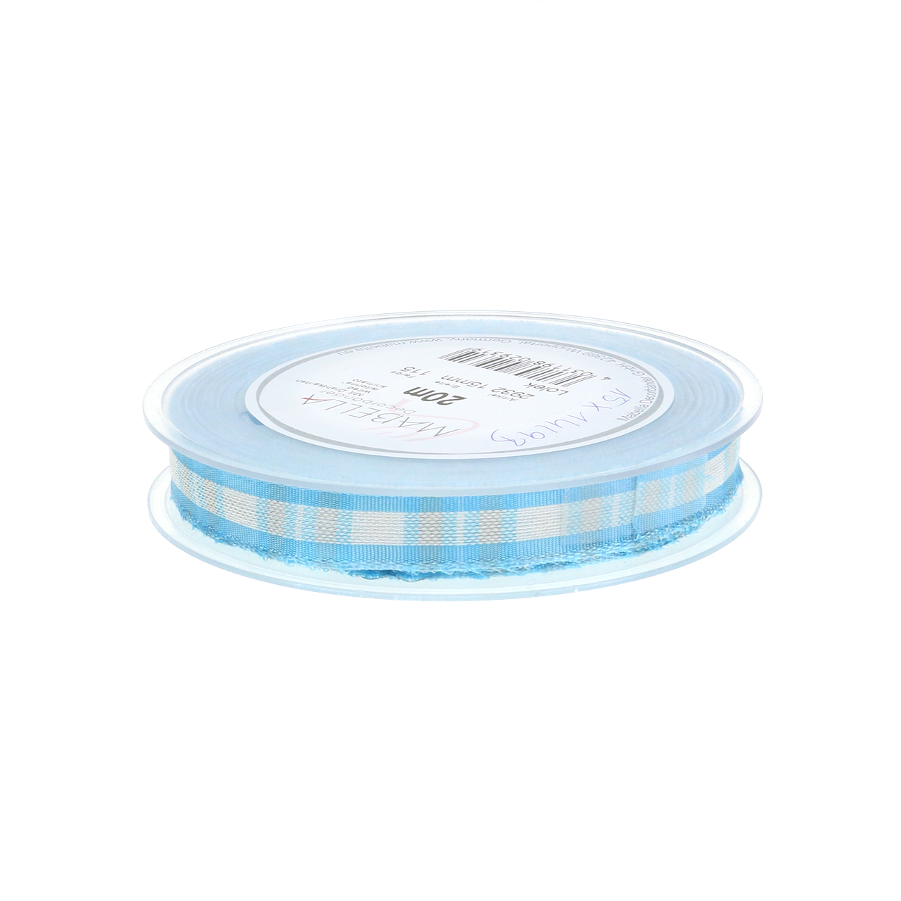 Produktname: Dekoband Karo mit Drahtkante Blau 15mm L20m