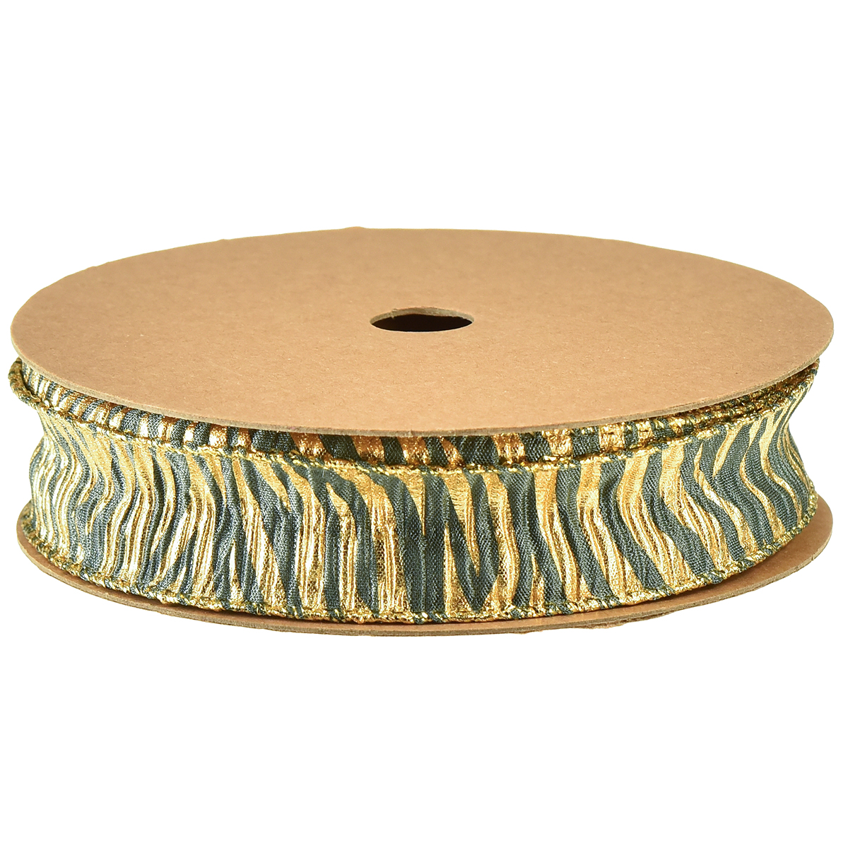 Chiffon Dekoband in Grün/Gold, 25mm Breite, 15m Länge - Ideal für Geschenkverpackungen