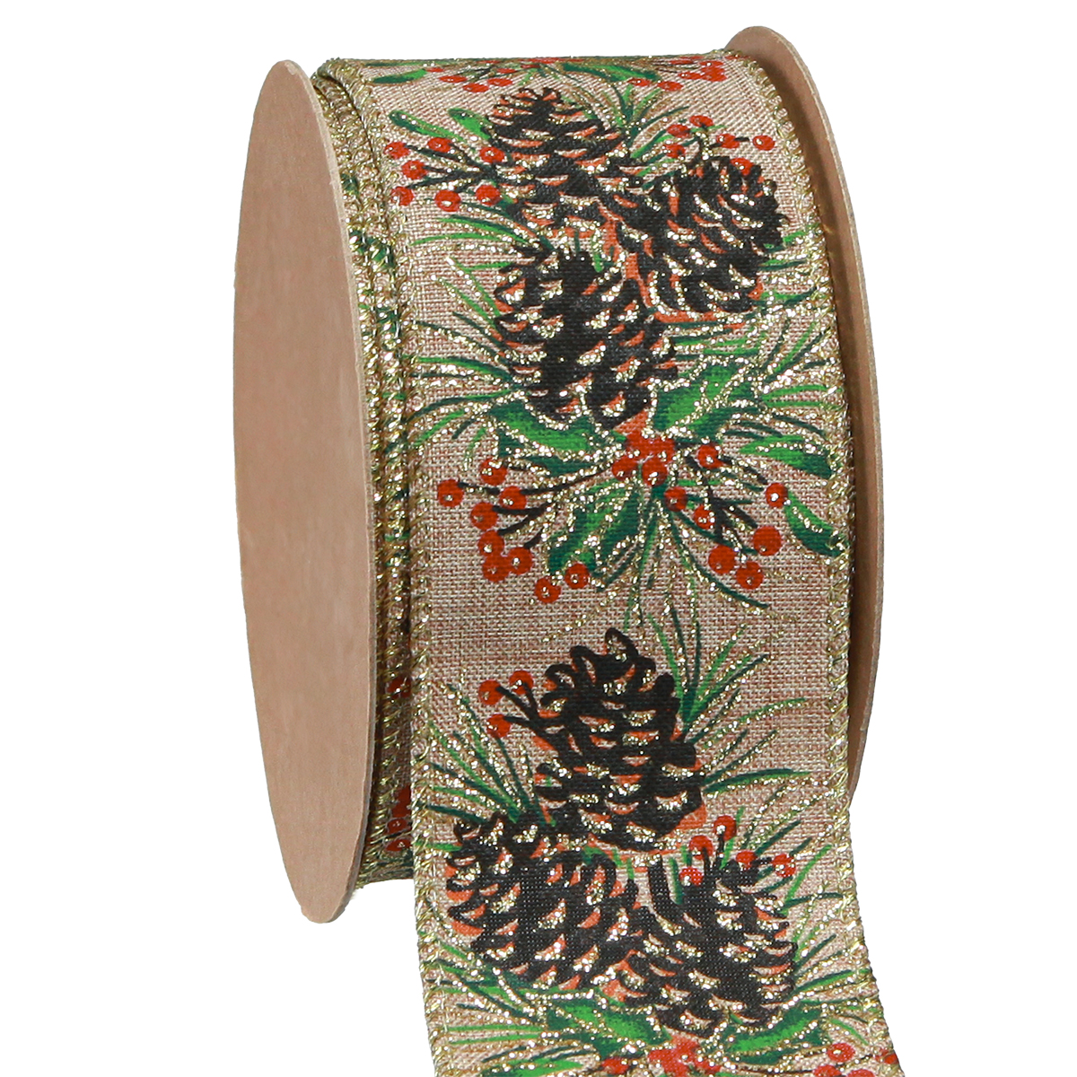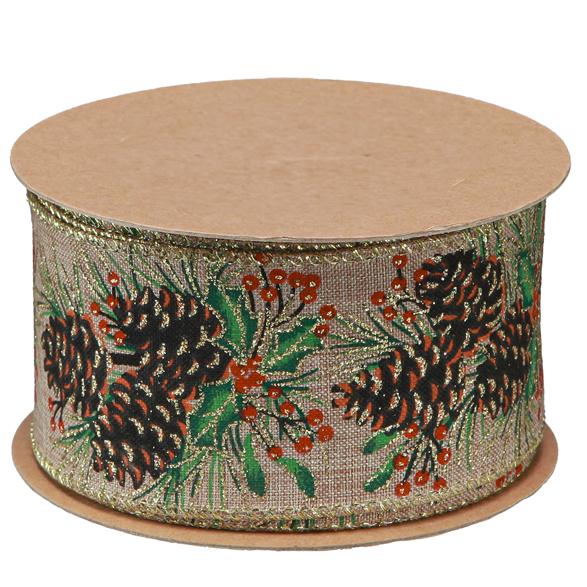 Dekoband Weihnachten Zapfen Breites Geschenkband Natur 60mm 10m
