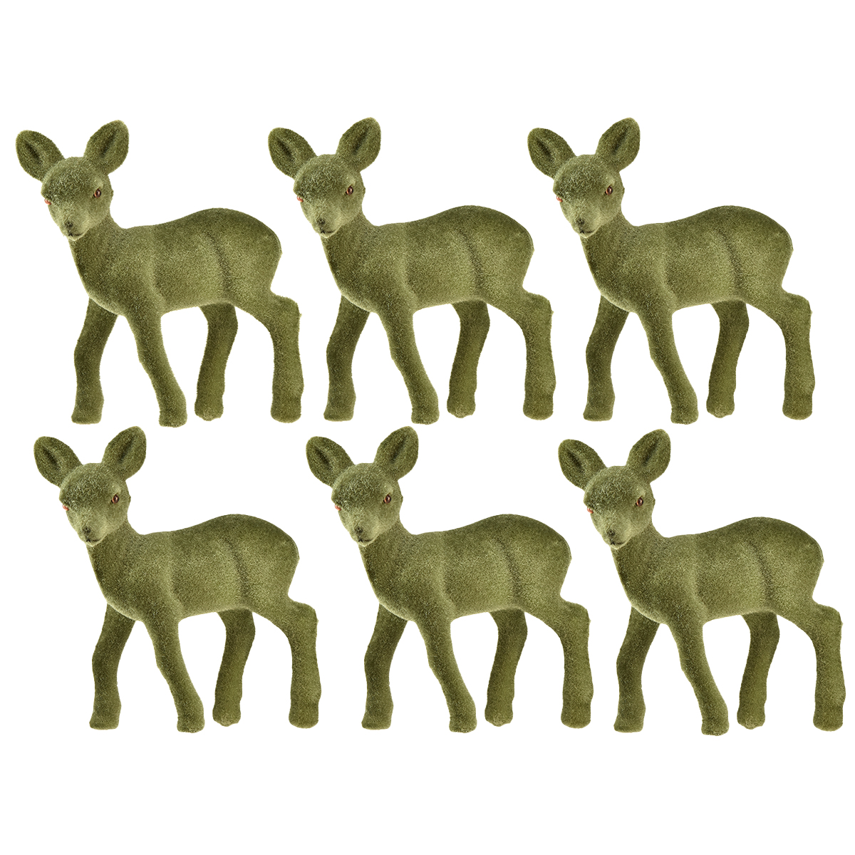 Dekofigur Reh Kitz beflockt Weihnachtsfiguren Grün 10,5cm 6 St