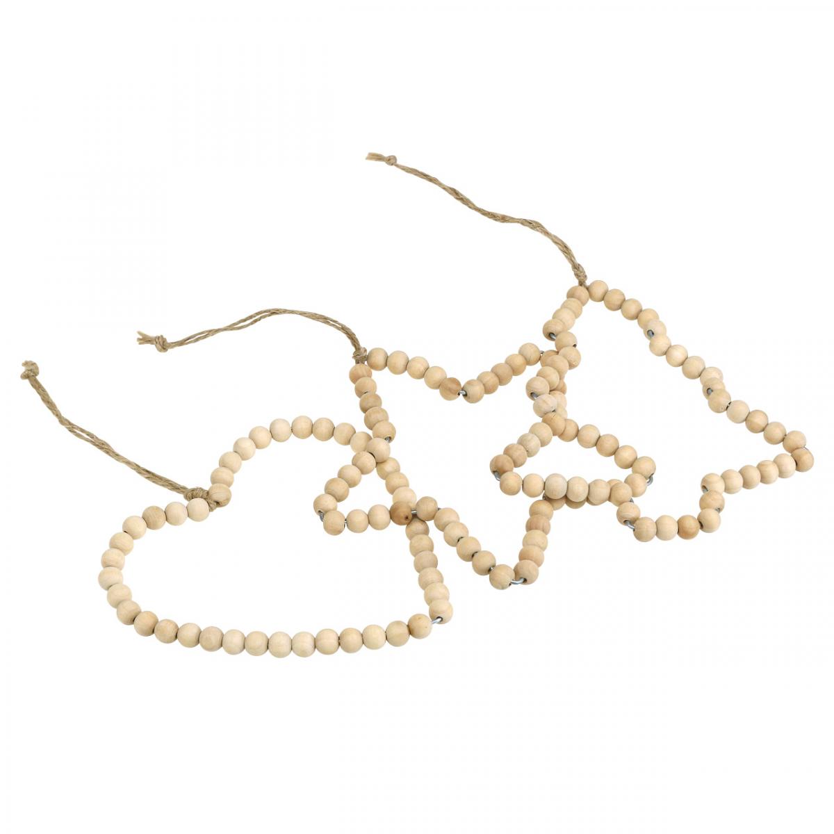 Dekohänger Weihnachten Holzperlen Herz Stern Baum H13cm 6St