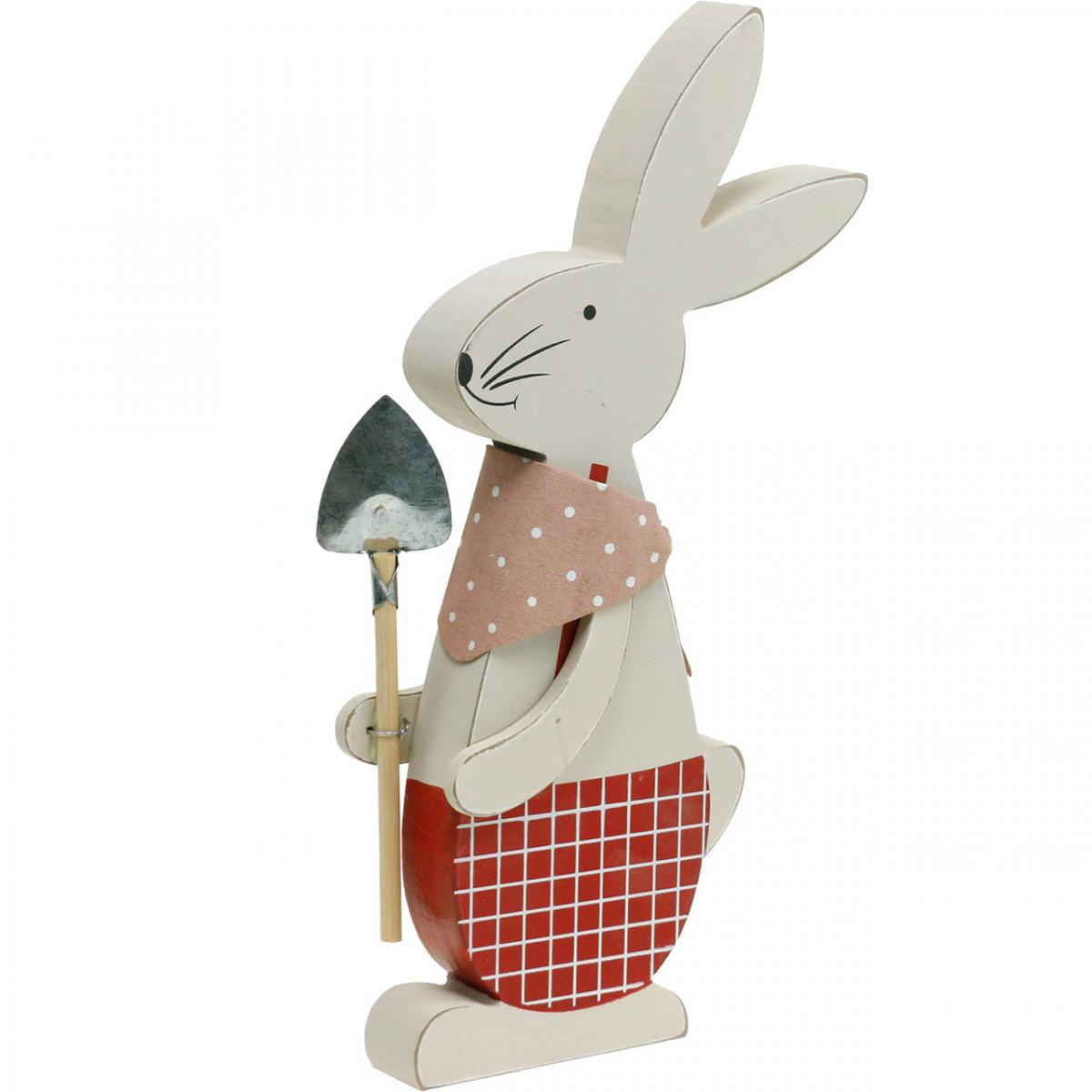 Produktname: Dekohase mit Schaufel, Hasenjunge, Osterdeko, Hase aus Holz, Osterhase