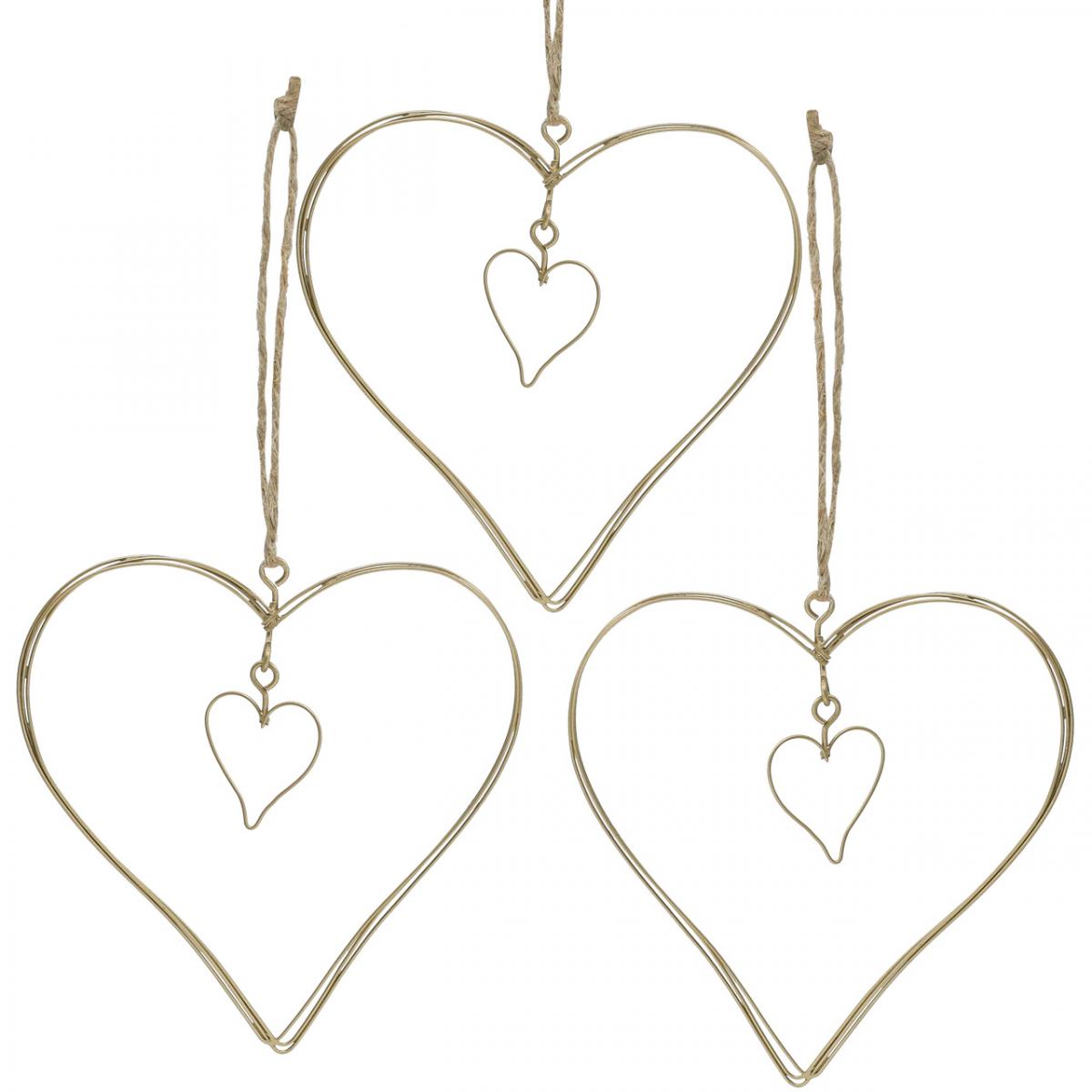 Dekoherz zum Hängen, Hängedeko Metall Herz Golden 10,5cm 6 St