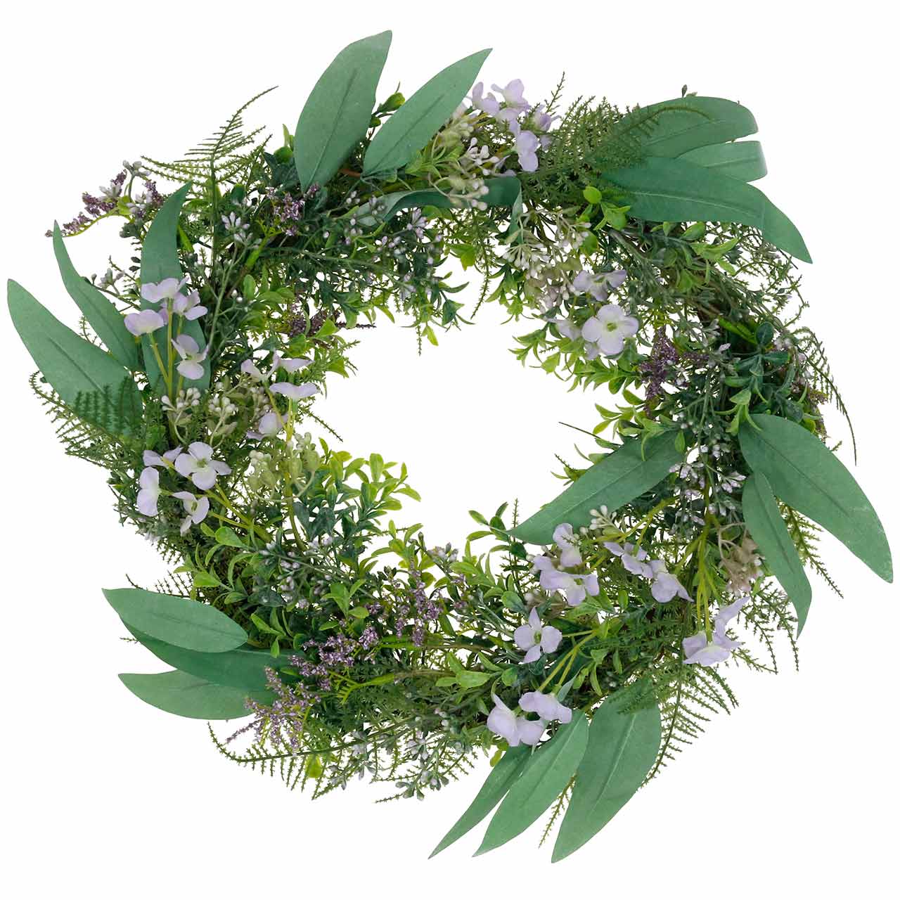 Dekokranz Eukalyptus, Farn, Blüten Künstlicher Kranz Tischkranz
