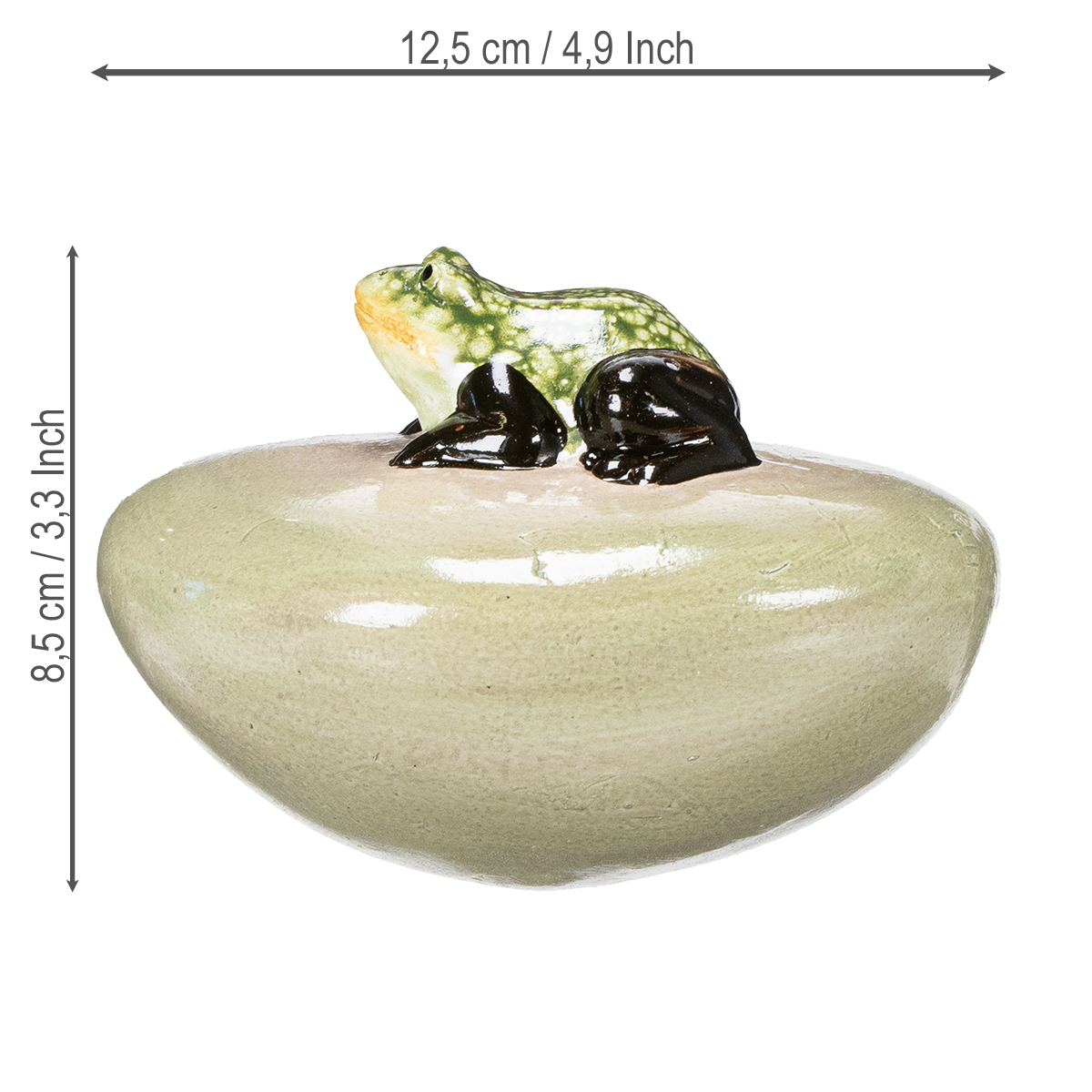 Ob auf der Fensterbank, am Teich oder auf dem Balkon – dieser dekorative Frosch auf einem kunstvollen Stein bringt eine Extraportion Charme in Ihre Deko. Mit seinem charmanten Design und der frischen grünen Farbe zieht er die Blicke förmlich magisch an. Der kleine Frosch ist nicht nur detailreich gestaltet, sondern bietet auch vielseitige Einsatzmöglichkeiten, die Ihrem Garten, Balkon oder sogar Ihrem Arbeitsplatz das gewisse Etwas verleihen. Was ihn besonders macht? Dieser Frosch ist ein Hohlkörper und kann dadurch auf dem Wasser schwimmen. Perfekt für den Teich oder Pool. Einfach schwimmen lassen und zuschauen, wie er sanft über das Wasser gleitet. Ein Highlight für die warmen Monate und eine außergewöhnliche Ergänzung für Ihre Outdoor- oder Indoor-Deko. Ideal für alle, die kreative Akzente setzen möchten, ohne dabei auf Natürlichkeit und Stil zu verzichten.