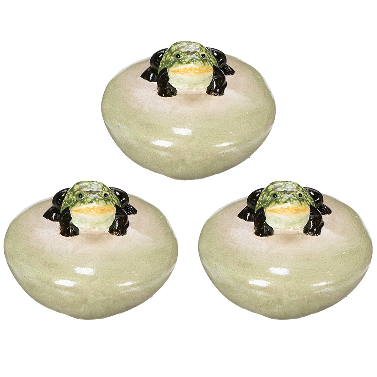 Deko Frosch Schwimmstein aus Keramik für Gartenteich und Wasserbecken 13cm 3St