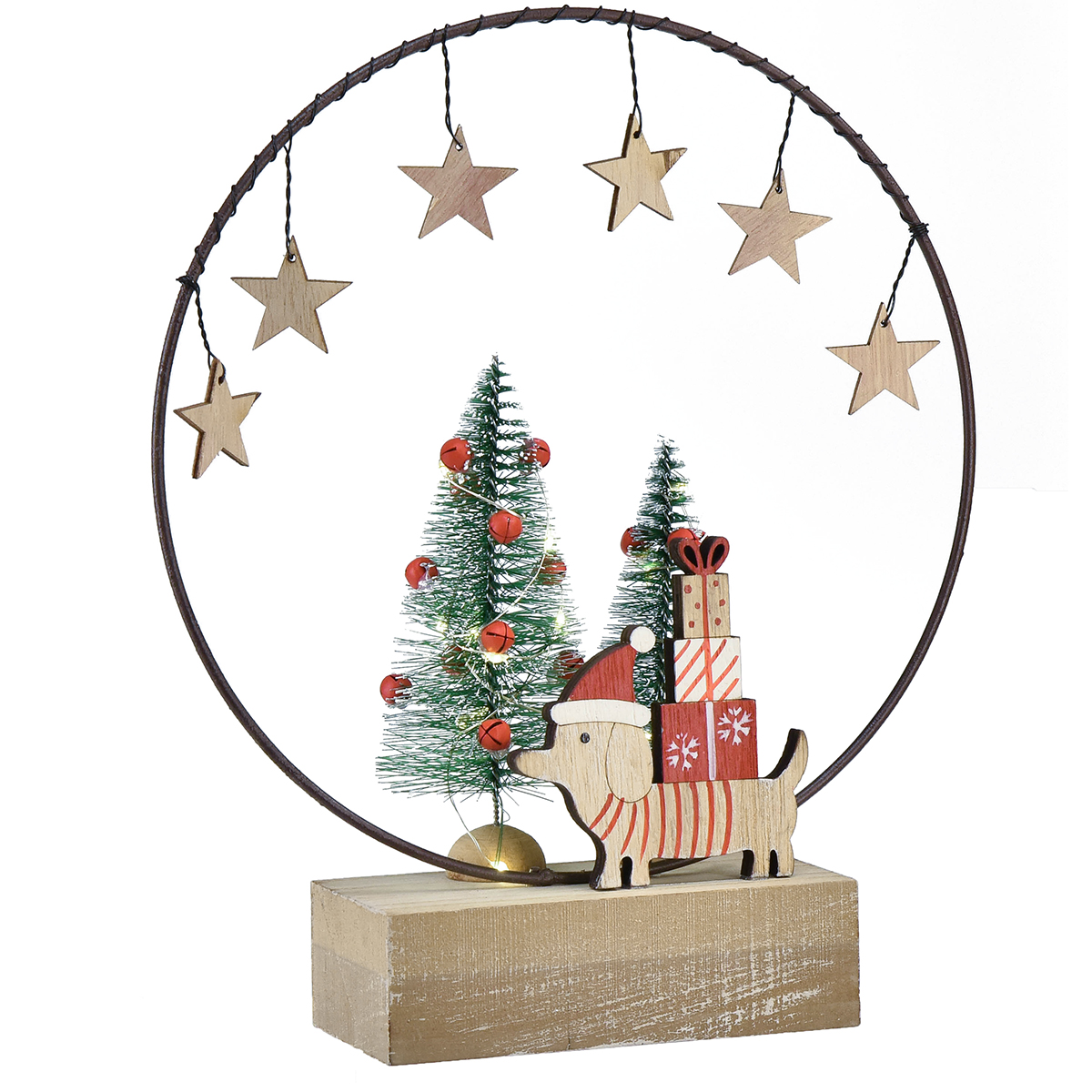 Produktname: Dekoring Holz Metall Weihnachten mit Hund Ø21cm H25cm