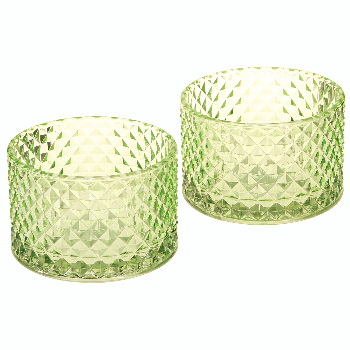 Dekoschale Glas Teelichthalter Grün Retro Ø10,5cm 2St