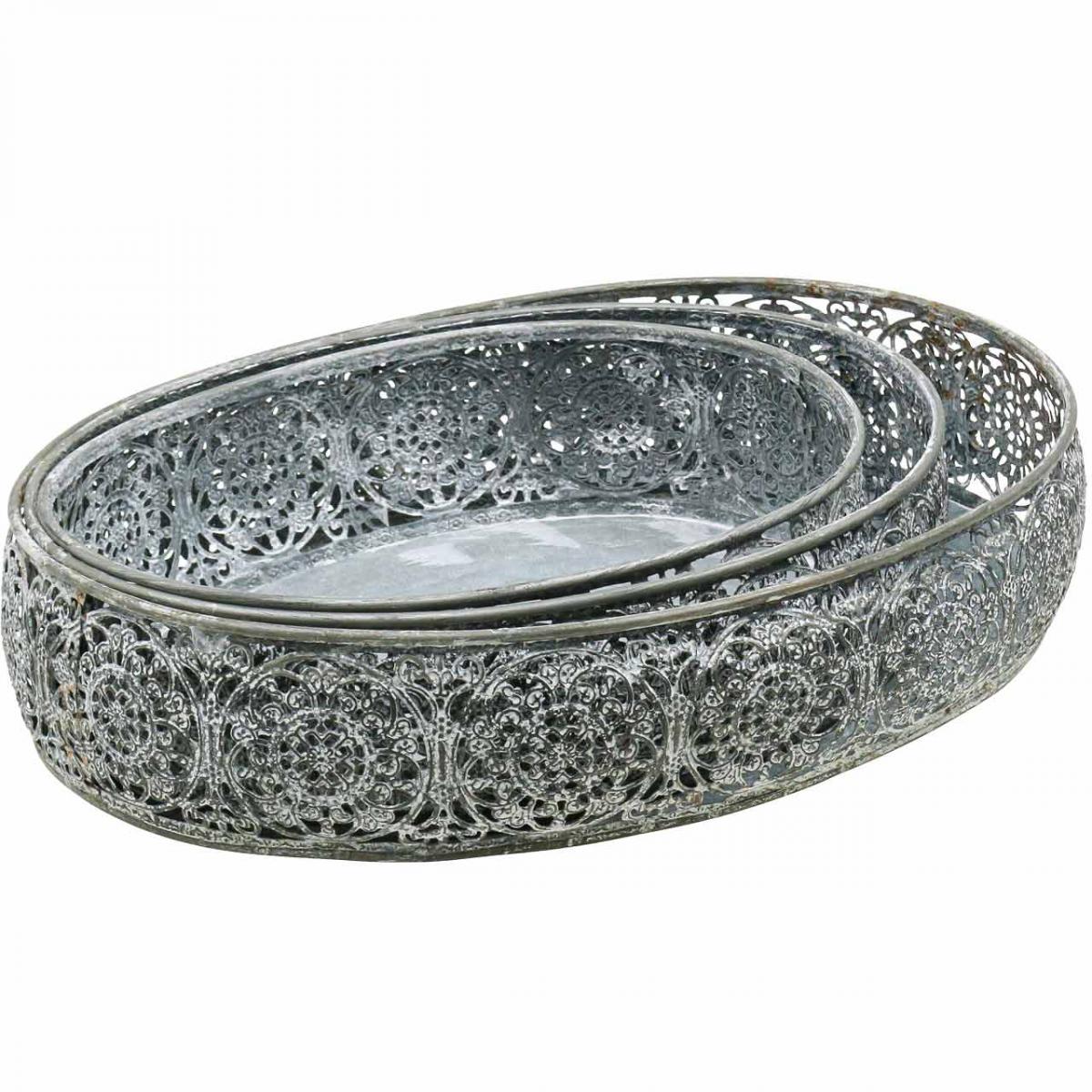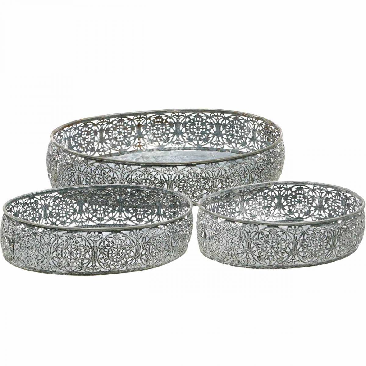 Produktname: Dekoschale Metall Oval Muster Grau 25,5/29/34,5cm 3er-Set