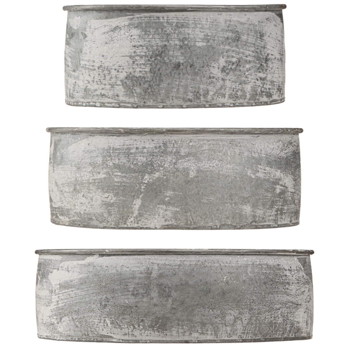 In zeitlosem Grau und weiß gewaschen, lassen sich die drei Schalen sowohl für klassische als auch für Arrangements im Vintage-Stil verwenden. Formschön sind die Metallschalen mit einem abgerundeten Rand versehen.