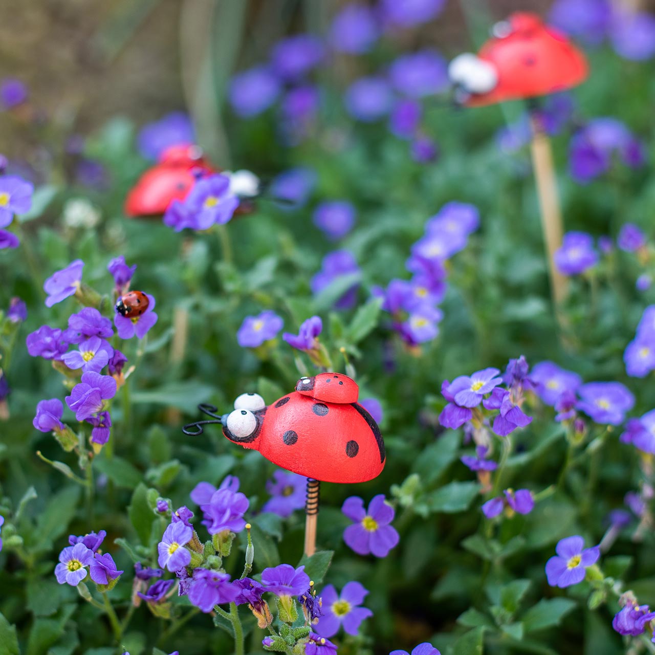Produktname: Dekostecker Marienkäfer am Stab Holz Rot, Schwarz 4cm x 2,5cm H23,5cm 16 St