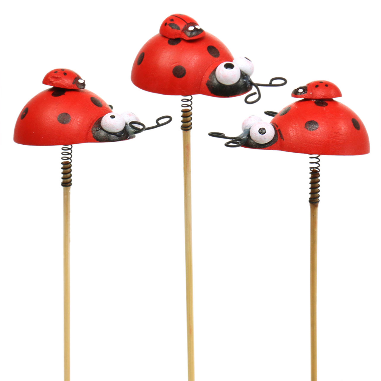 Dekostecker Marienkäfer am Stab Holz Rot, Schwarz 4cm x 2,5cm H23,5cm 16 St