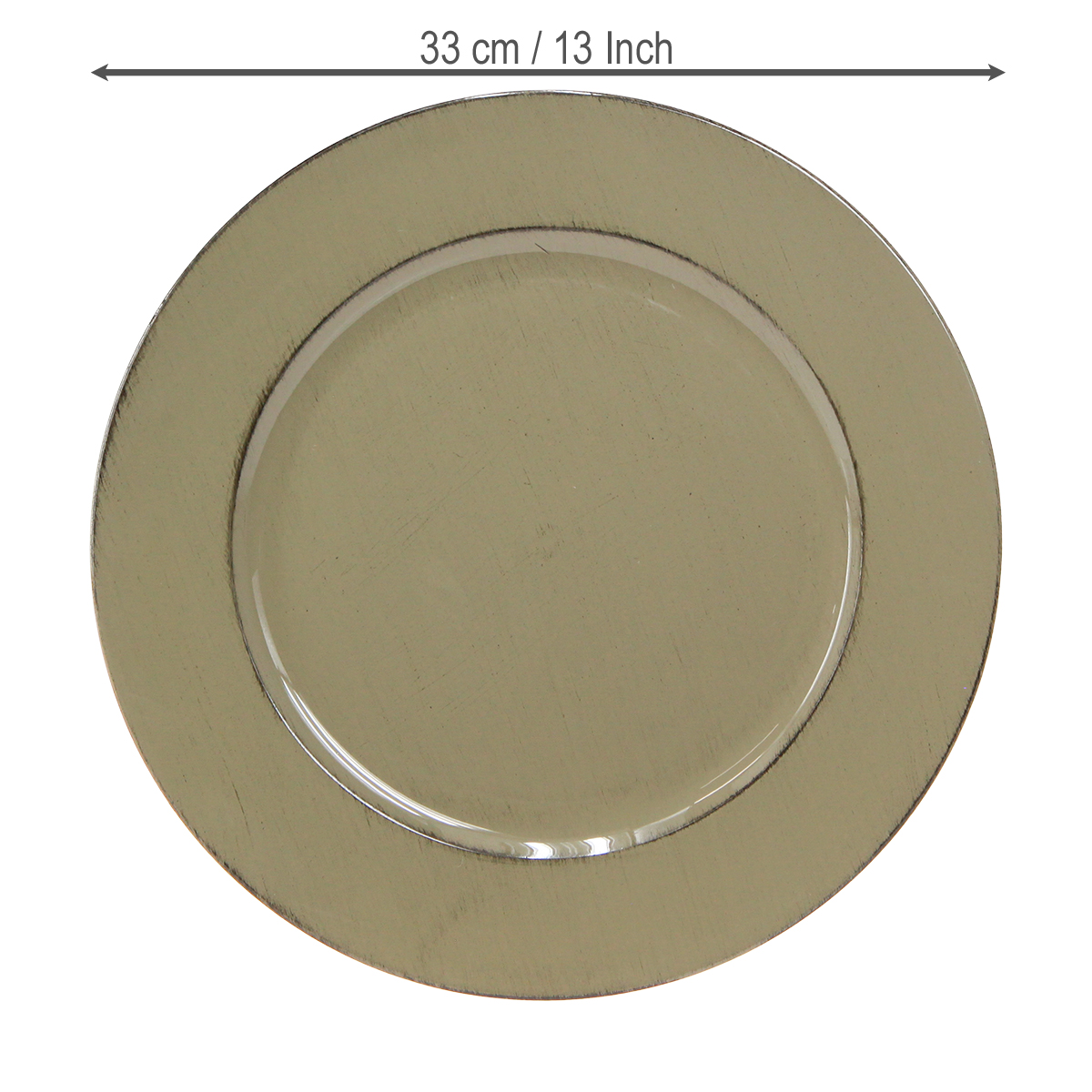 Produktname: Dekoteller Grün Plastikteller Vintage Moosgrün Braun Ø33cm