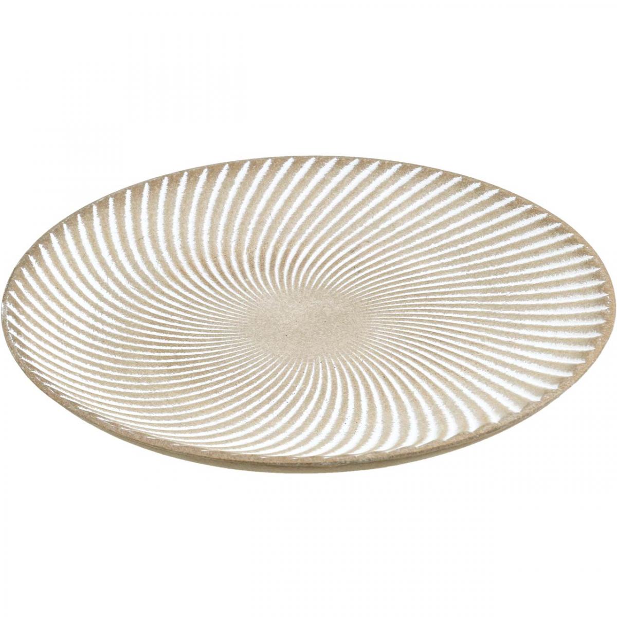 Dekoteller Rund Weiß Braun Rillen Tischdeko Ø35cm H3cm