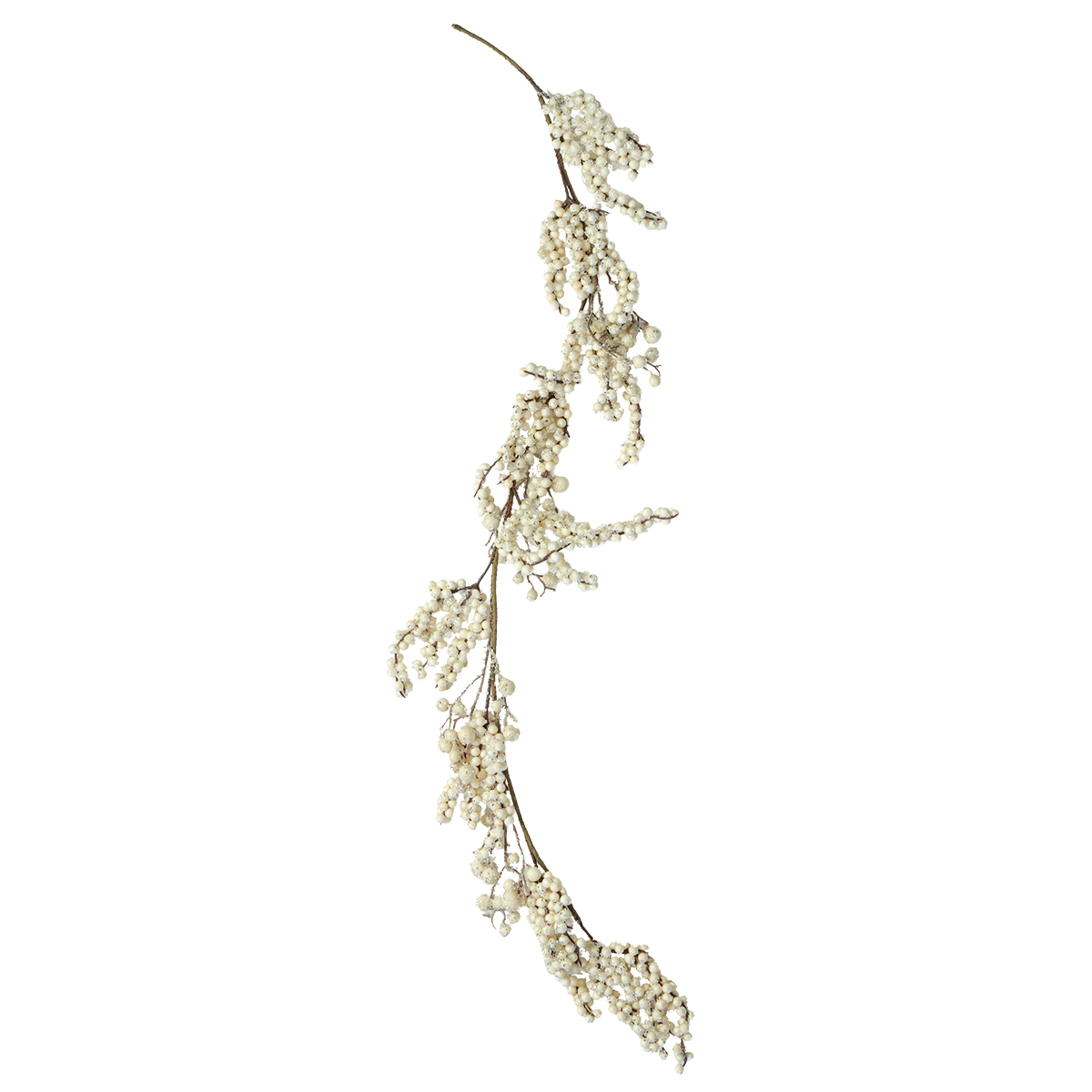 Dekozweig Schneebeeren Wintergirlande Creme 130cm