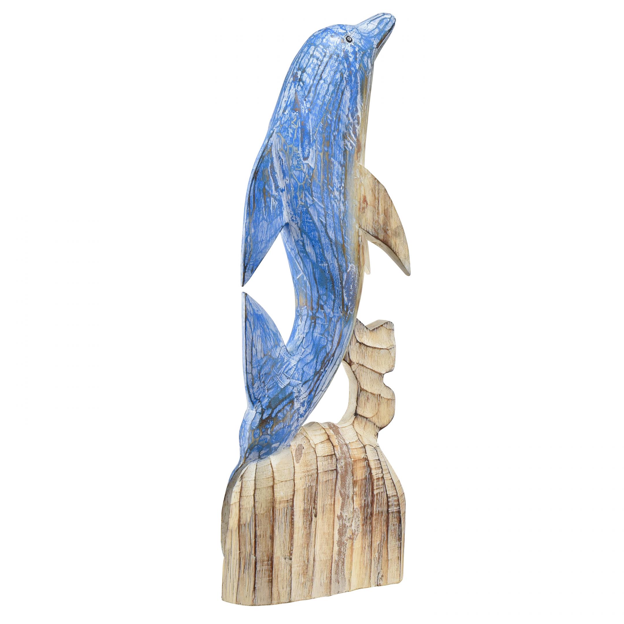 Delphin Figur Maritime Holzdeko Handgeschnitzt Blau H59cm
