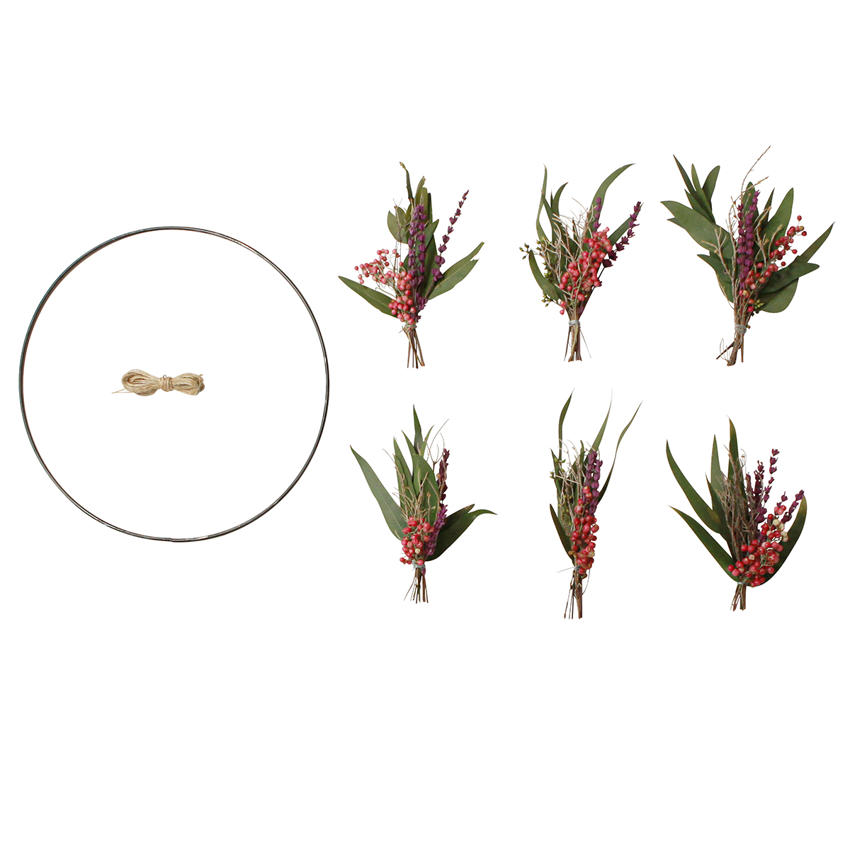 Erleben Sie die Schönheit der Natur und machen Sie aus dem DIY-Box-Ring eine Trockenblumen-Deko-Loop mit einem Durchmesser von etwa 30cm. Dieser handgemachte Kranz mit Lavendel, Eukalyptus und rosaroten Pfefferbeeren ist die perfekte Ergänzung für Ihr Heim und bringt den lieblichen Duft und die entspannende Atmosphäre der Provence in Ihre Wohnräume. Lassen Sie sich von unserem Trockenblumen-Kranz inspirieren und verleihen Sie Ihrem Zuhause moderne, rustikale Eleganz.