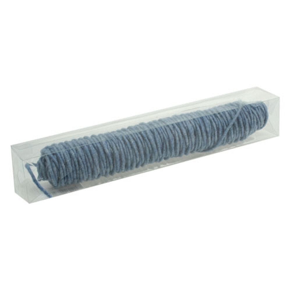 Der Dochtfaden in Blau wird in einer Box geliefert und ist in etwa 55 Meter lang. Die Kordel besteht zu 20% aus Jute sowie zu 80% aus Schafwolle.