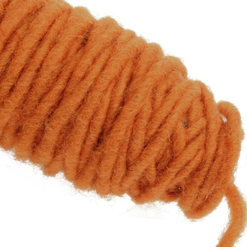 Der Dochtfaden in Orange wird in einer Box geliefert und hat eine Länge von circa 55 Metern geliefert. Der Faden selbst besteht zu 20% aus Jute und zu 80% aus Schafwolle.