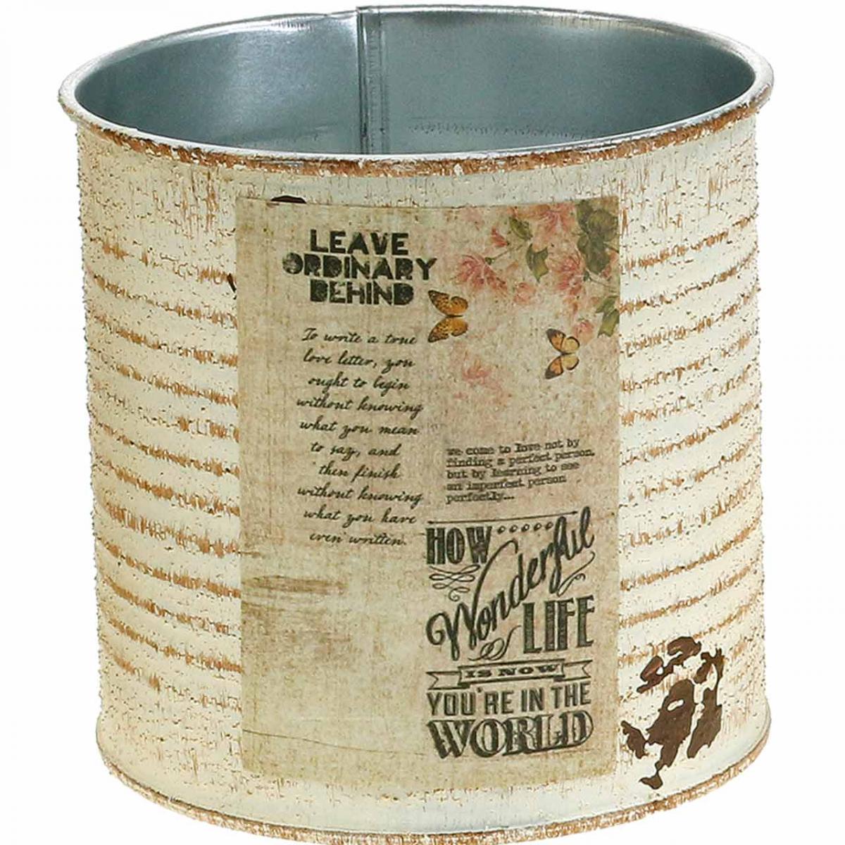 Produktname: Dose Übertopf Creme Metall Shabby Chic Ø11cm H10,5cm