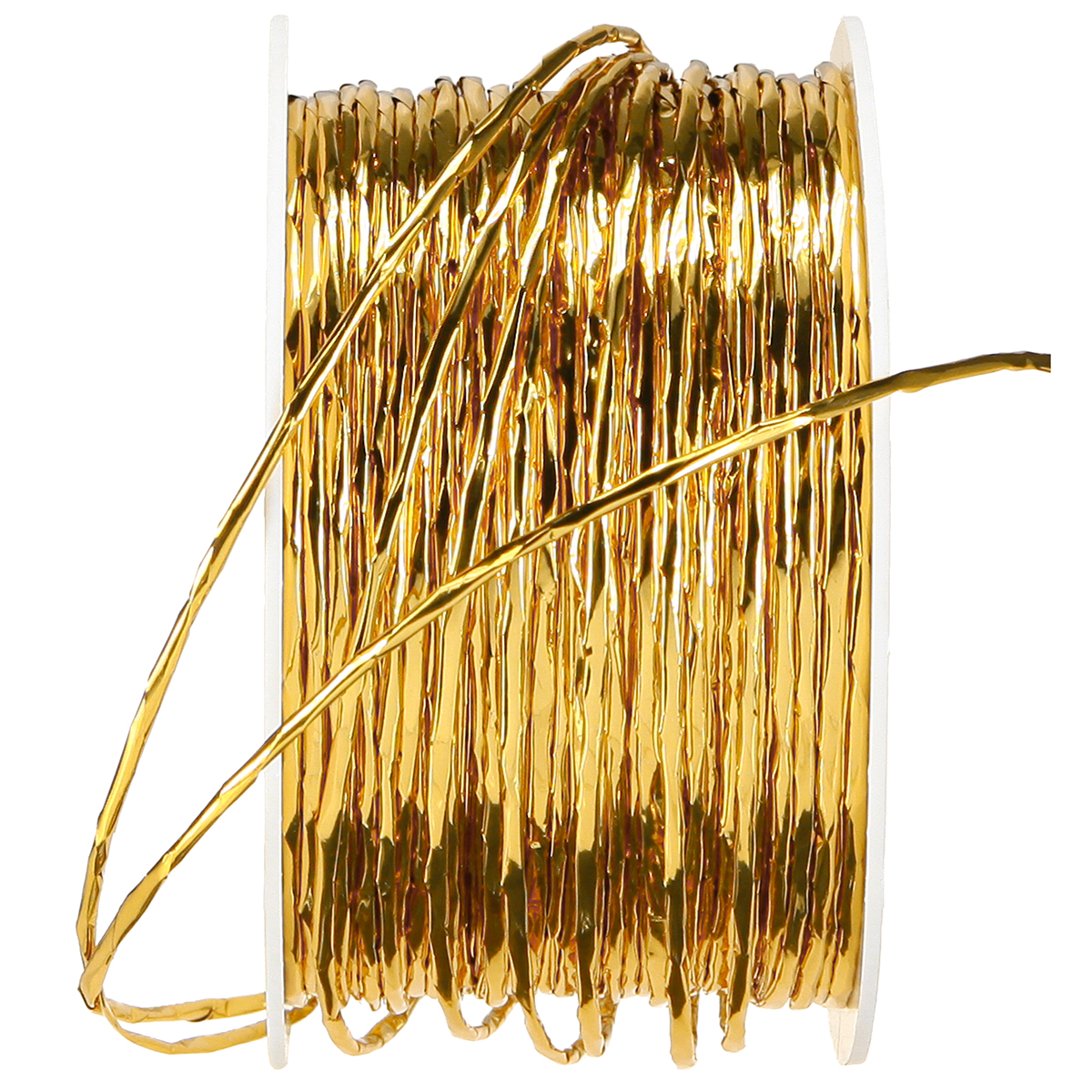Geliefert wird Ihnen der umwickelte Draht in Gold mit einer Länge von etwa 100 Metern und einem Durchmesser von circa 2 Millimetern. Er ist auf einer handlichen Kunststoff-Spule aufgerollt.