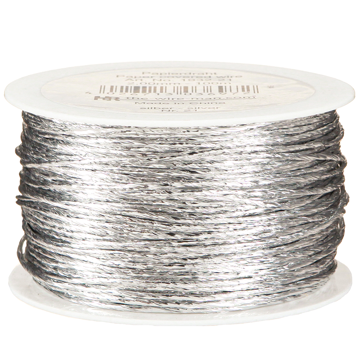 Der in Silber umwickelte Draht wird auf einer praktischen Spule aus Kunststoff geliefert. Bei einer ungefähren Länge von 100 Metern misst der Wickeldraht im Durchmesser etwa 2 Millimeter.