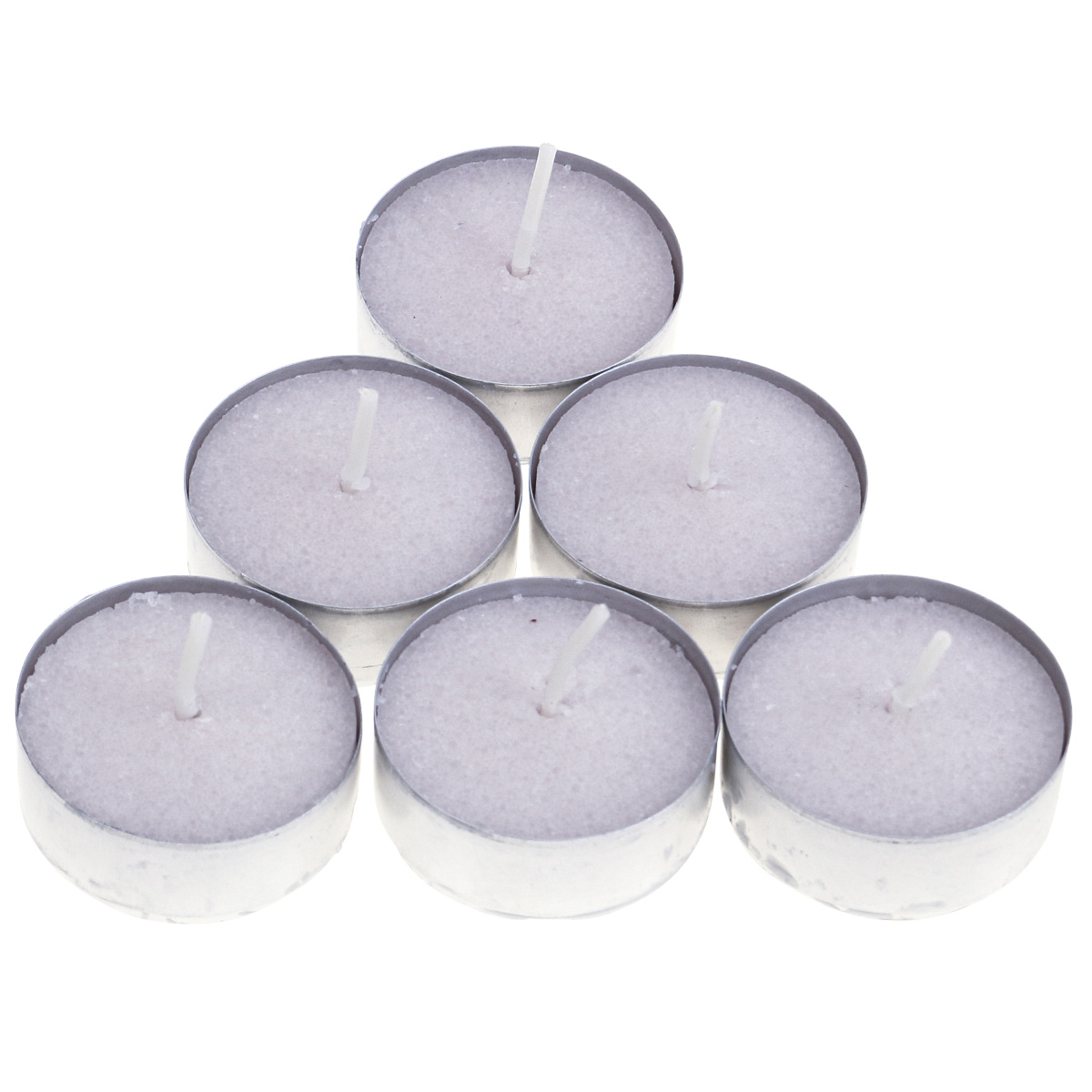 Die Raumduft-Teelichter sind passend zum Lavendel aus Wachs in Helllila gefertigt worden. Die Teelichtkerzen kommen in Aluschälchen und haben einen typischen Durchmesser von ungefähr 3,6 Zentimetern.