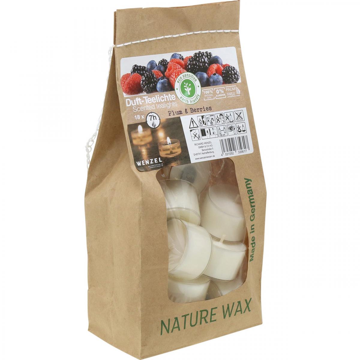 Die Duft-Teelichter in Weiß kommen im Pack zu 18 Stück in einer vernähten Papiertüte mit Sichtfenster zu Ihnen. Schon beim Herausnehmen verströmen die Wachskerzen ihren natürlichen süßen, lecker beerigen Duft. Beim Anzünden intensiviert sich der angenehme Geruch der Teelichter mit Waldbeeren-Duft dann noch mehr.