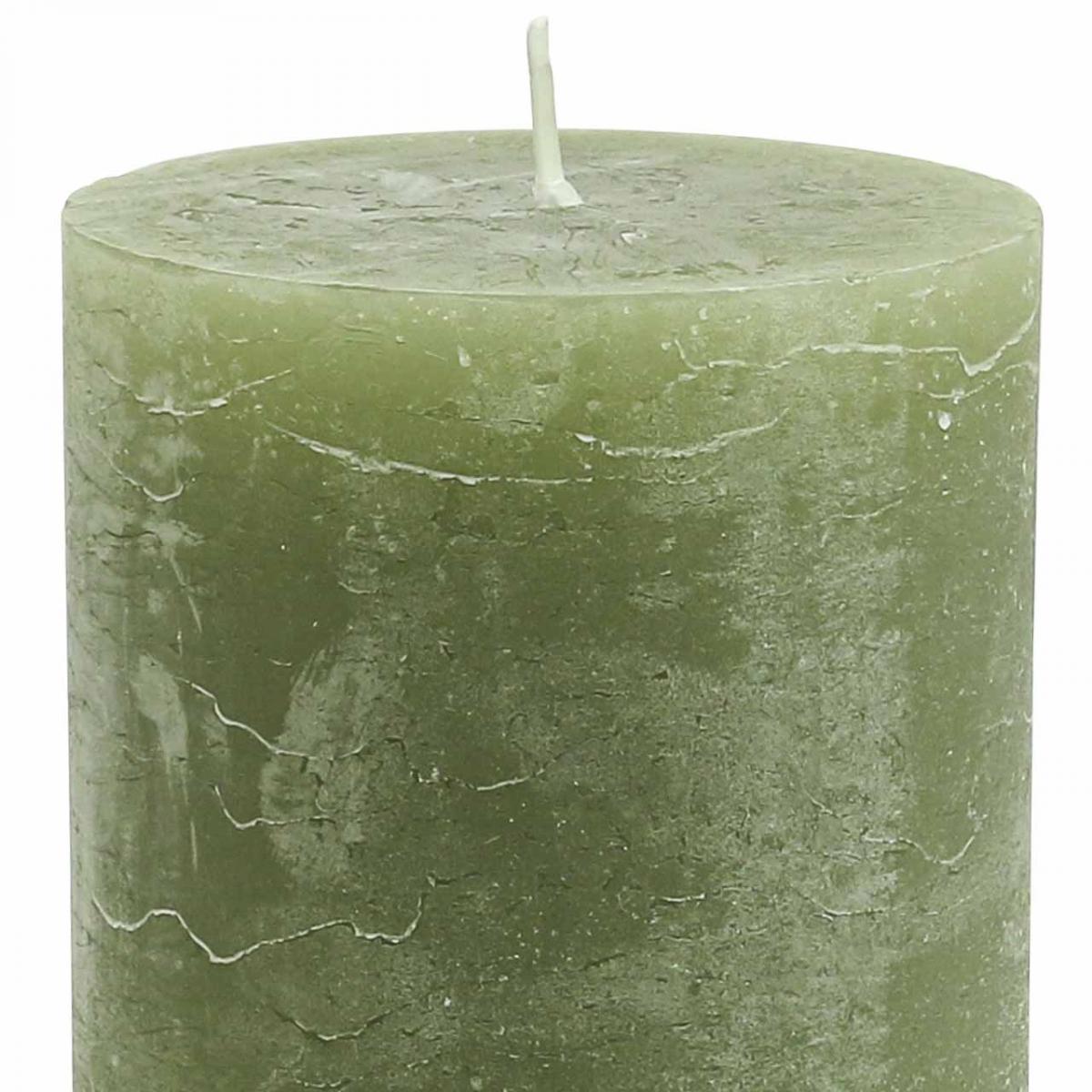Durchgefärbte Kerzen Olivgrün Stumpenkerzen 85×120mm 2St für Adventskranz & Tischdeko