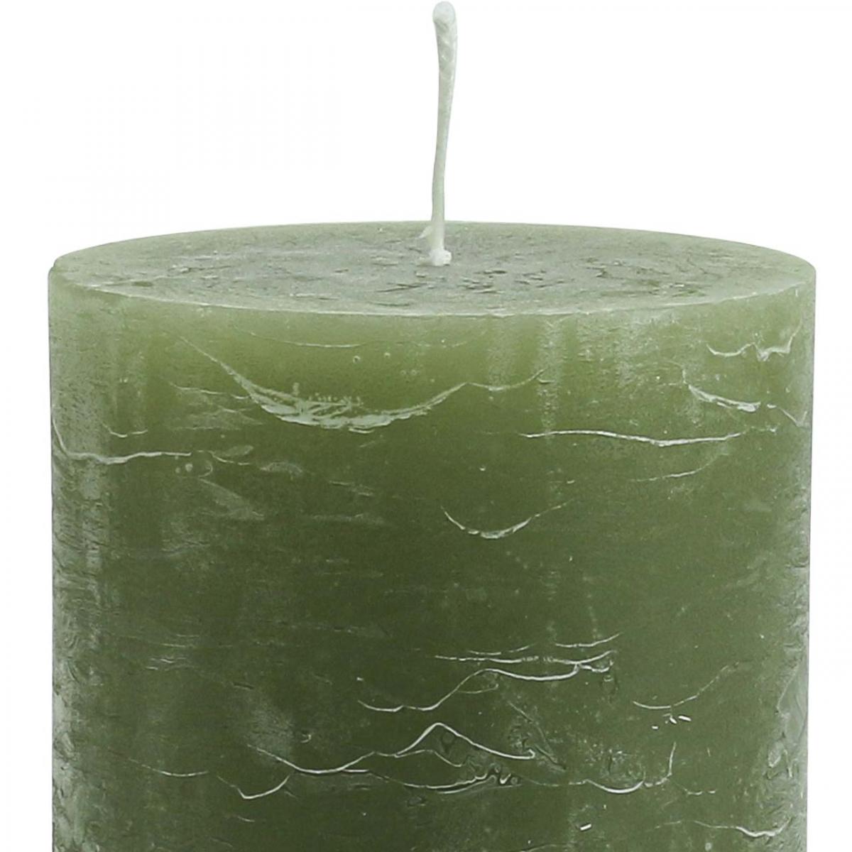 Produktname: Durchgefärbte Kerzen Olivgrün Stumpenkerzen 85×150mm 2 St