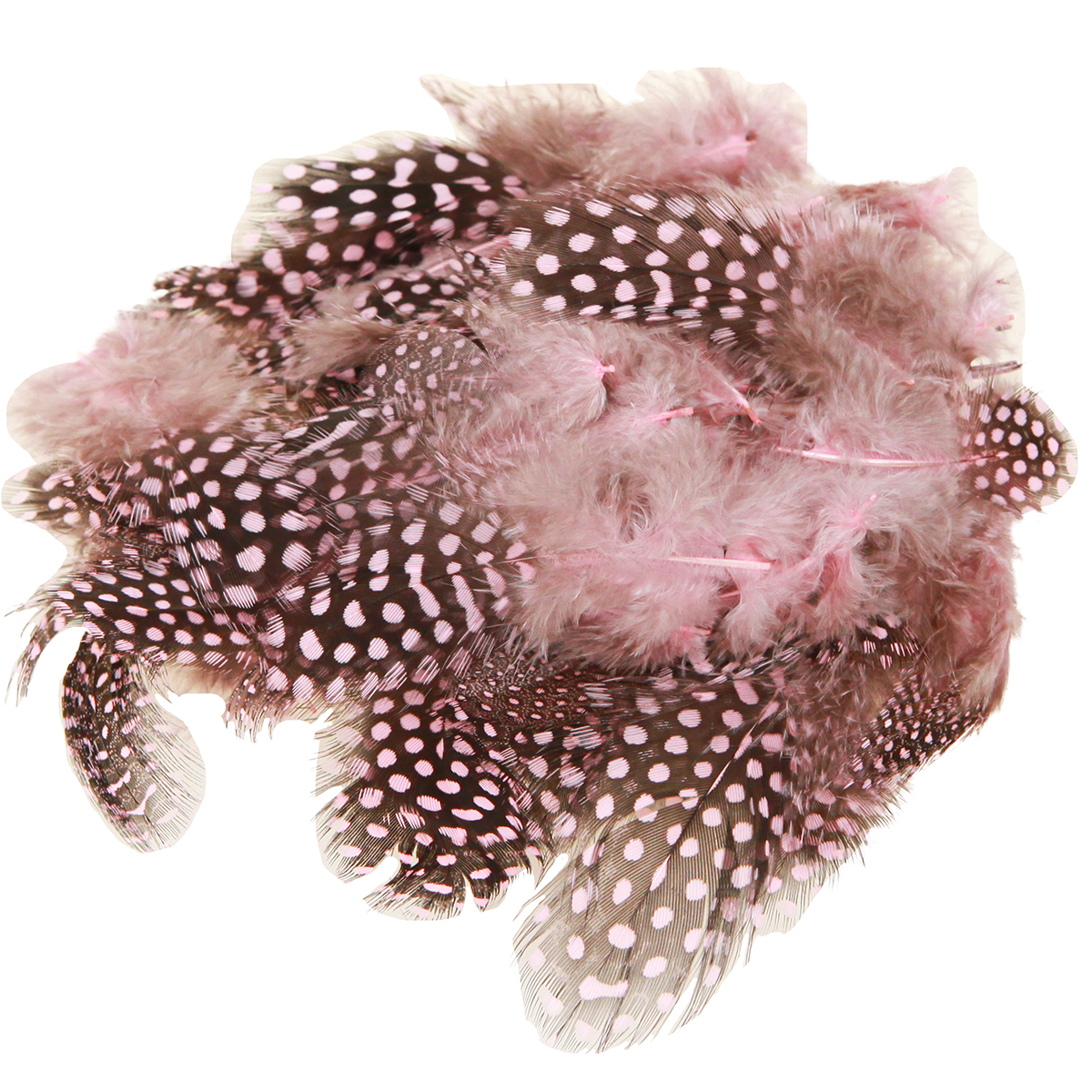 Produktname: Echte Perlhuhnfedern Federn Rosa mit Punkten 4-12cm 100 St