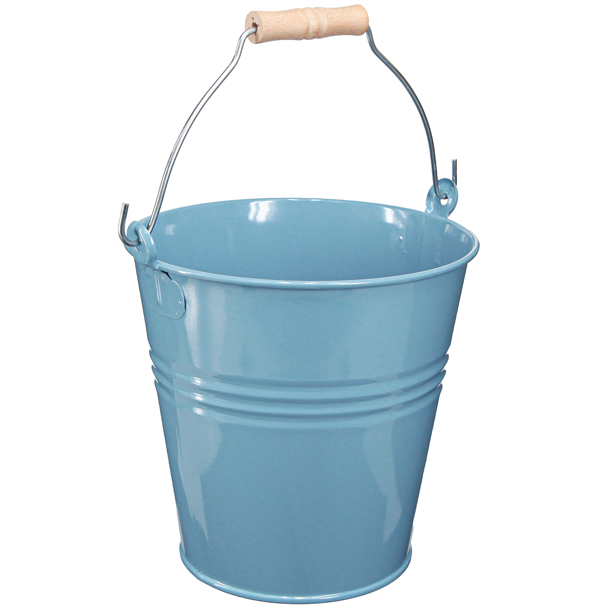 Produktname: Eimer Metall Blau Pflanzkübel mit Holzgriff 26x22,5x23cm