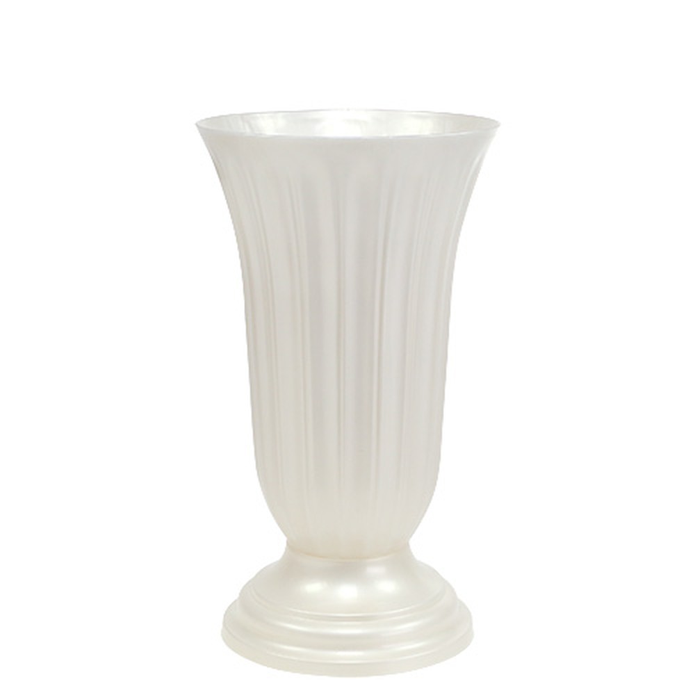 Durch die elegante Perlmuttfarbe funkelt die Oberfläche leicht bei Lichteinfall und wirkt dadurch besonders edel. So können Sie auch eine Hochzeitsfeier damit dekorieren und die schicke Blumenvase prima in einen Eingangsbereich oder auch zum Gabentisch stellen. Aber auch auf eine Säule gestellt, die im Raum steht, wirkt die Deko-Vase als Blickfang sehr fein. Dabei können Sie sie auch noch mit einem Satinband umwickeln und nach Gebrauch bequem reinigen.