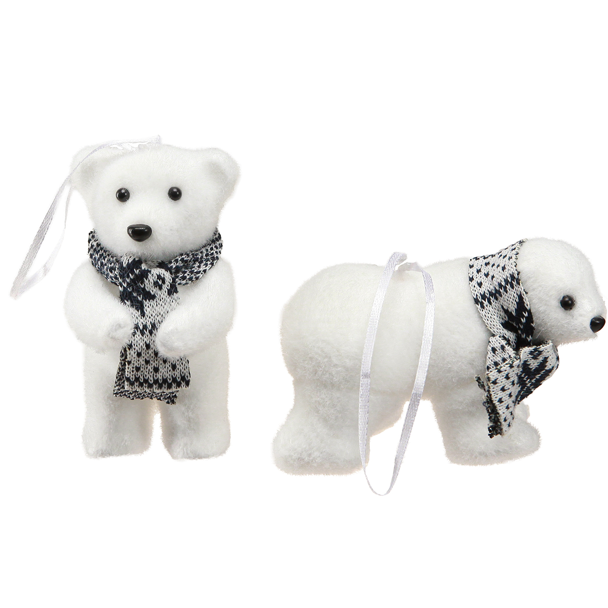 Verwandeln Sie Ihr Zuhause in ein bezauberndes Winterwunderland mit den putzigen Eisbären zum Hängen als Winterdeko. Diese hängenden Deko-Figuren sind nicht nur ein Blickfang, sondern auch vielseitig einsetzbar und besonderes dekoratives Highlight jeder Winter- und Weihnachtszeit. Die Figuren, die Sie in einer Größe von circa 11 x 7cm bekommen, bestechen durch ihre Liebe zum Detail: Die schwarzen Knopfaugen und die schwarze Nase verleihen dem Eisbären einen charmanten Ausdruck, der jeden Betrachter in Weihnachtsstimmung versetzt. Kombiniert mit einem trendigen schwarzweißen Schal, fügt sich diese Dekoration elegant in moderne und klassische Wohnstile ein. Ob als Christbaumschmuck, Fensterdeko oder als Verzierung von Geschenkverpackungen, diese Eisbären passen perfekt zu jeder weihnachtlichen Dekoration und bieten vielfältige Möglichkeiten zum Dekorieren.