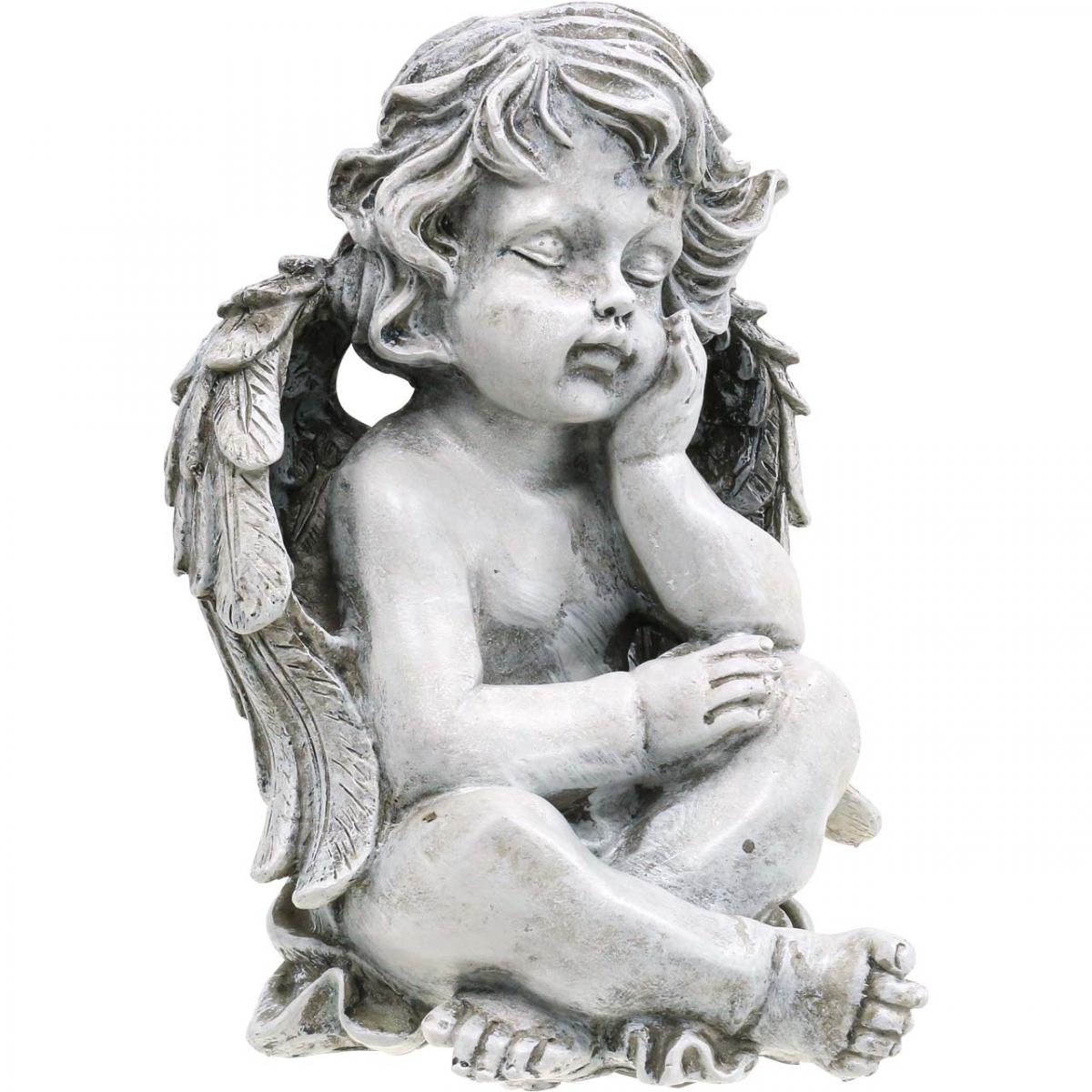 Floristik24 Grabengel Engel Grau Grabfigur Grabdeko 24cm