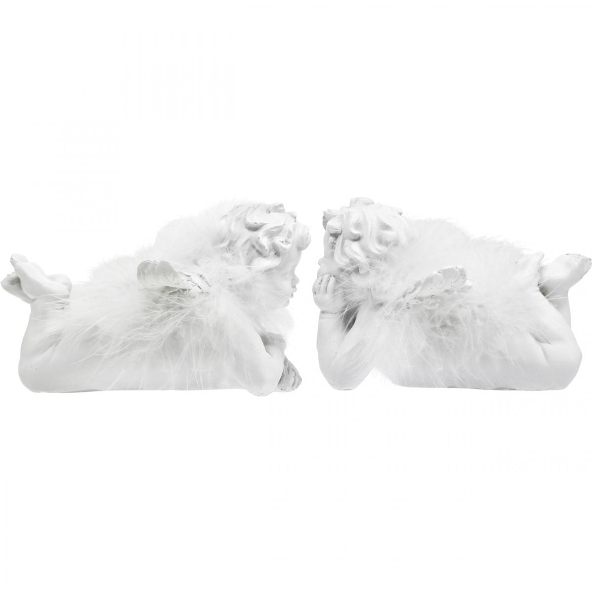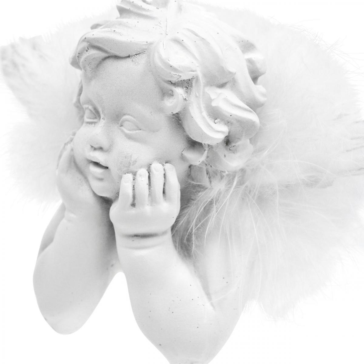 Engel liegend, Weihnachtsdeko, Engeldeko mit Federn, Advent Weiß H8/8,5cm L14/12,5cm 2er-Set