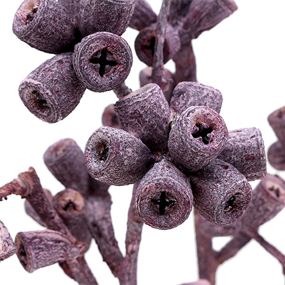 Der Eukalyptuszweig in Brombeer und Gefrostet befindet sich in einem Beutel zu 25 Stück und besitzt unterschiedliche Größen. So reicht die Spanne von ungefähr 17 bis 35 Zentimeter. Die Holzfrüchte sehen auch wunderbar als Wanddekoration neben einer Wanduhr aus Holz aus. Aber auch in einem Blumenkübel im Eingang können Sie mit diesen Trockenfrüchten Ihre Kübelpflanzen und Ihren Türkranz effektvoll verzieren.