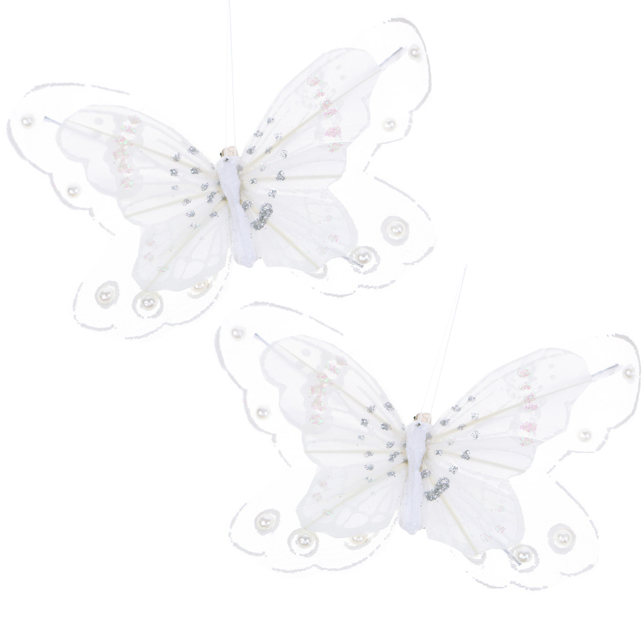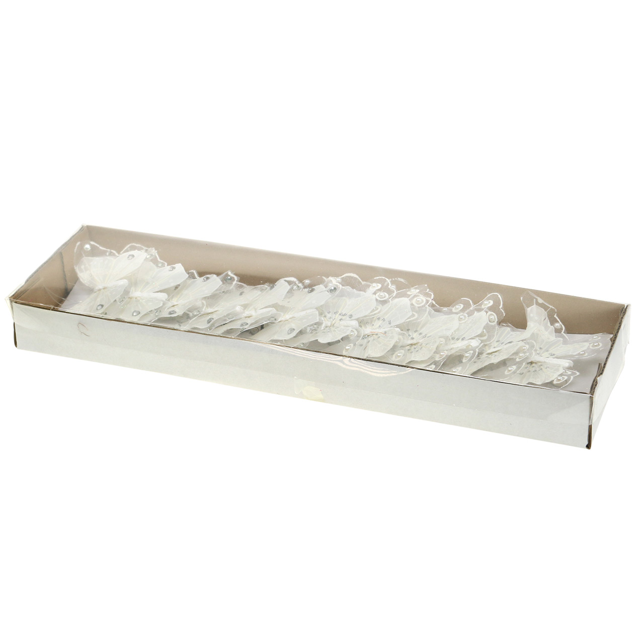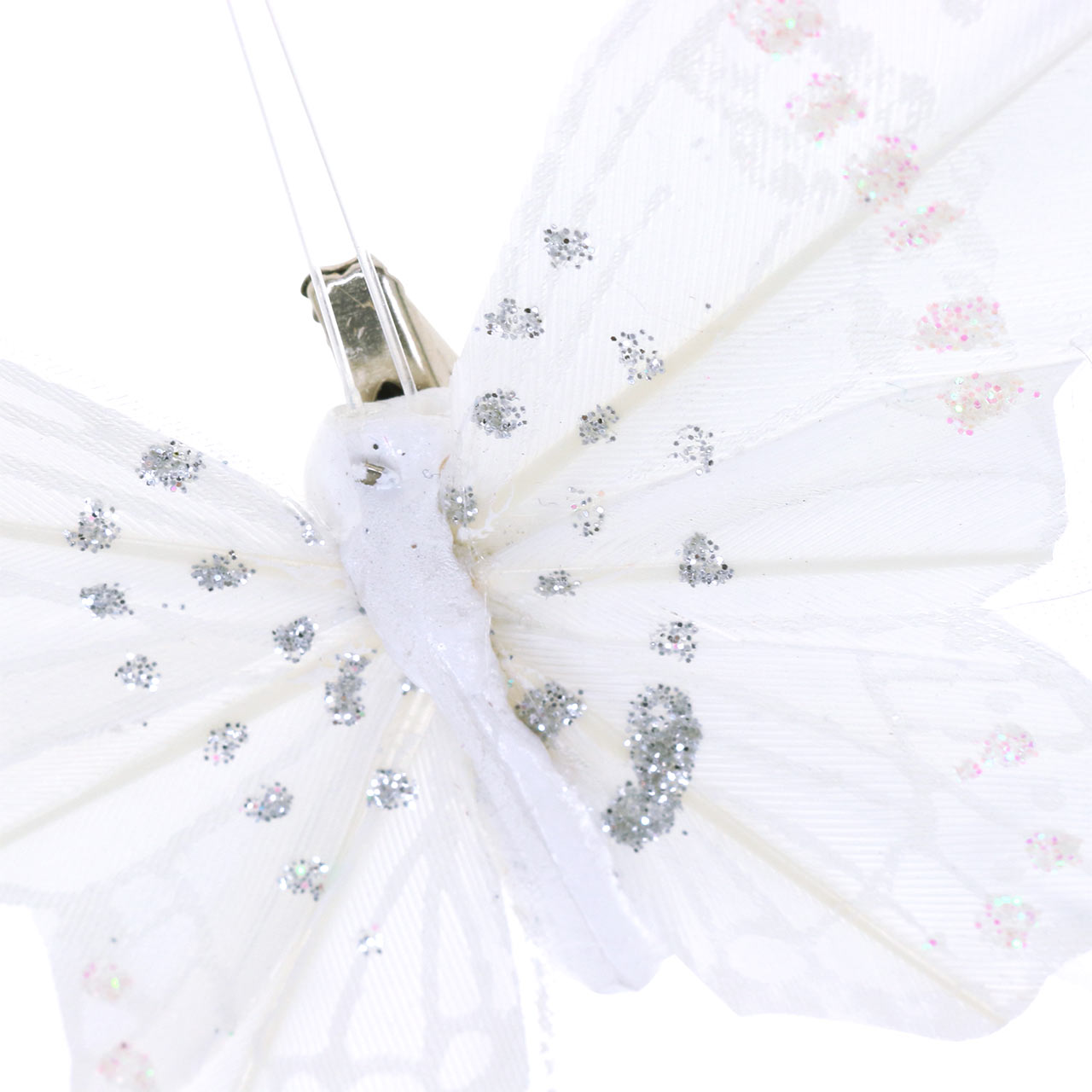 Produktname: Feder Schmetterling auf Clip Weiß 10cm 12 St