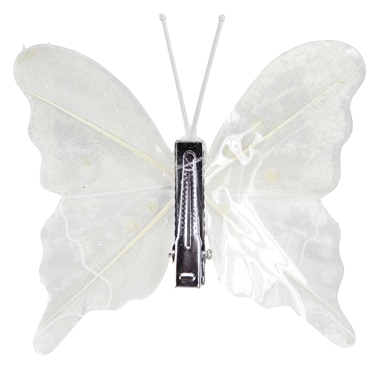 Schmetterling Deko in Weiß am Clip 7,5cmx7cm 4 St