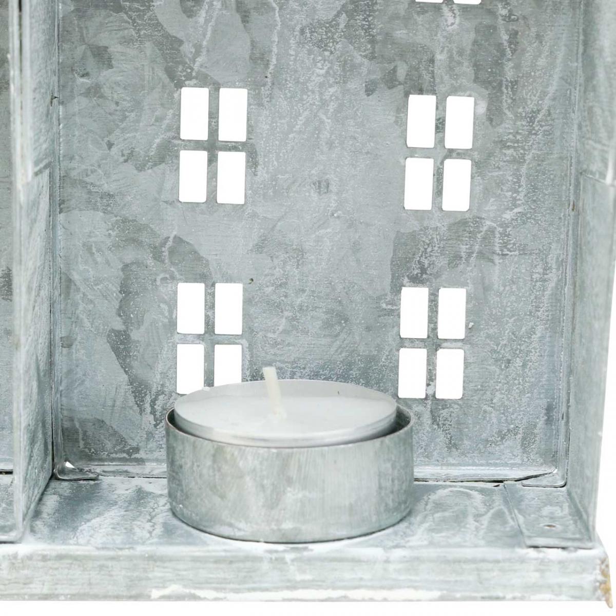 Produktname: Fensterdeko Weihnachten, Windlicht, Diorama Hausreihe, Metalldeko Silbern Shabby Chic L20cm H20cm