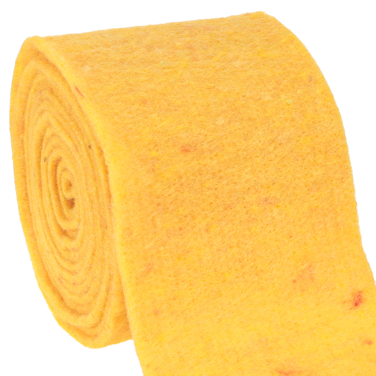 Das Filzband in Gelb ist zu einer großen Rolle aufgewickelt und hat in etwa eine Breite von ungefähr 15 Zentimetern. Die Länge beträgt circa 5 Meter.