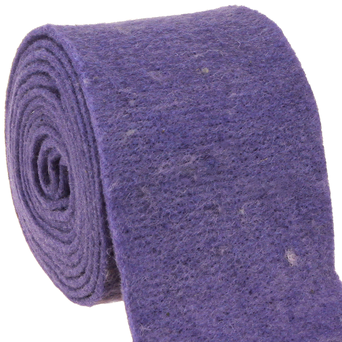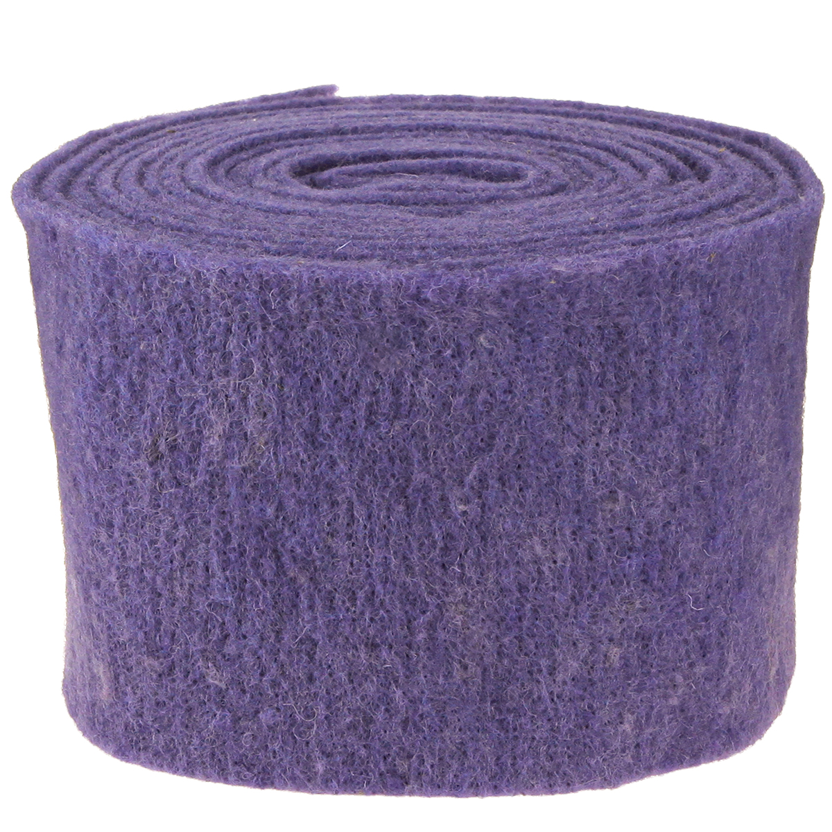 Das violette Filzband aus Schafwolle ist etwa 15 Zentimeter breit und insgesamt ungefähr 5 Meter lang und eignet sich prima zum Basteln, Nähen und Dekorieren. Es ist zu einer großen Rolle gewickelt und kann ganz einfach zurechtgeschnitten und gekürzt werden.