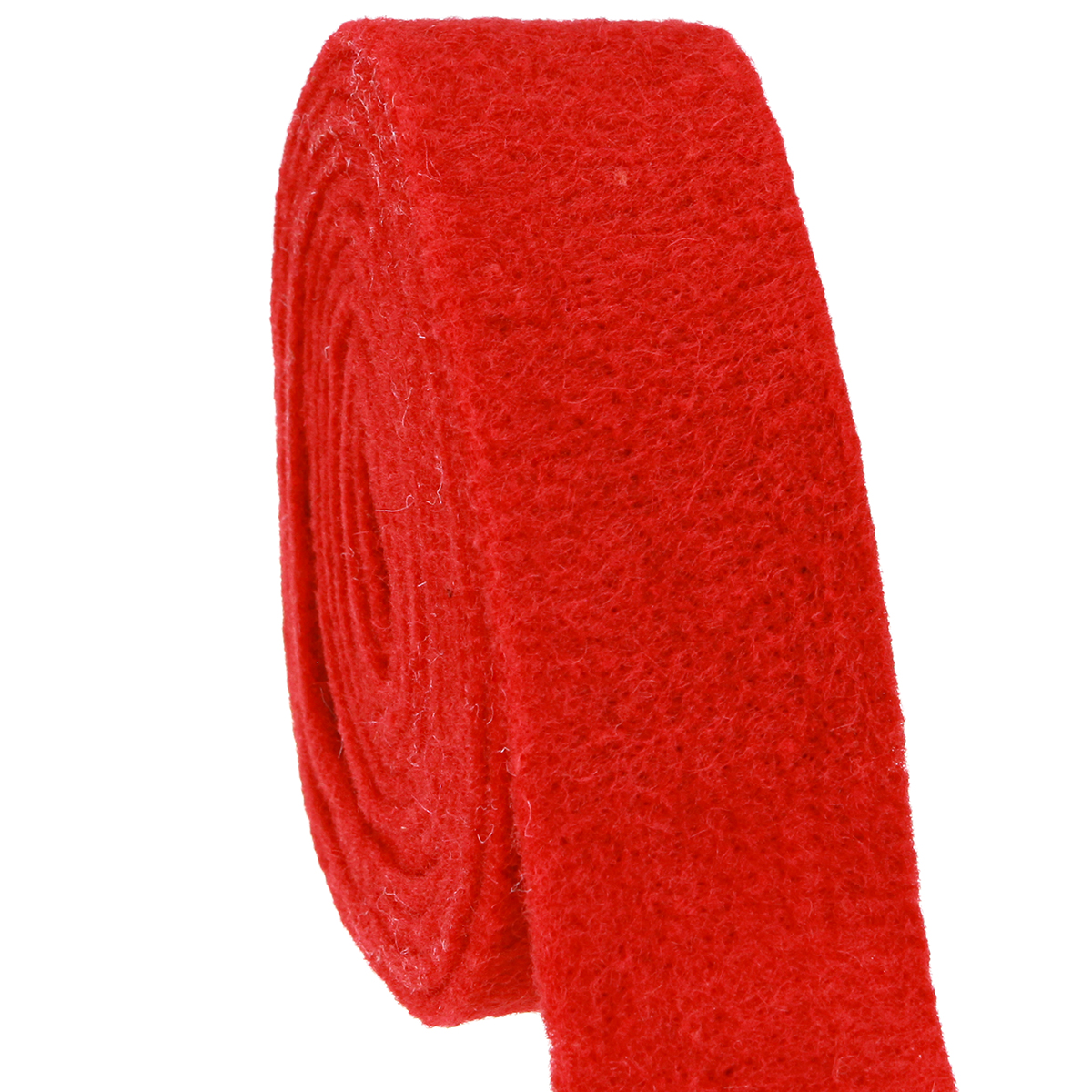 Das rote Filzband ist zusammengerollt und besitzt eine Breite von circa 7,5 Zentimetern und eine Gesamtlänge von ungefähr 5 Metern. Es kann unter anderem auch als origineller Tischläufer und zum Kreieren einer natürlichen Dekoration für Schaufenster und Empfangstresen eingesetzt werden.