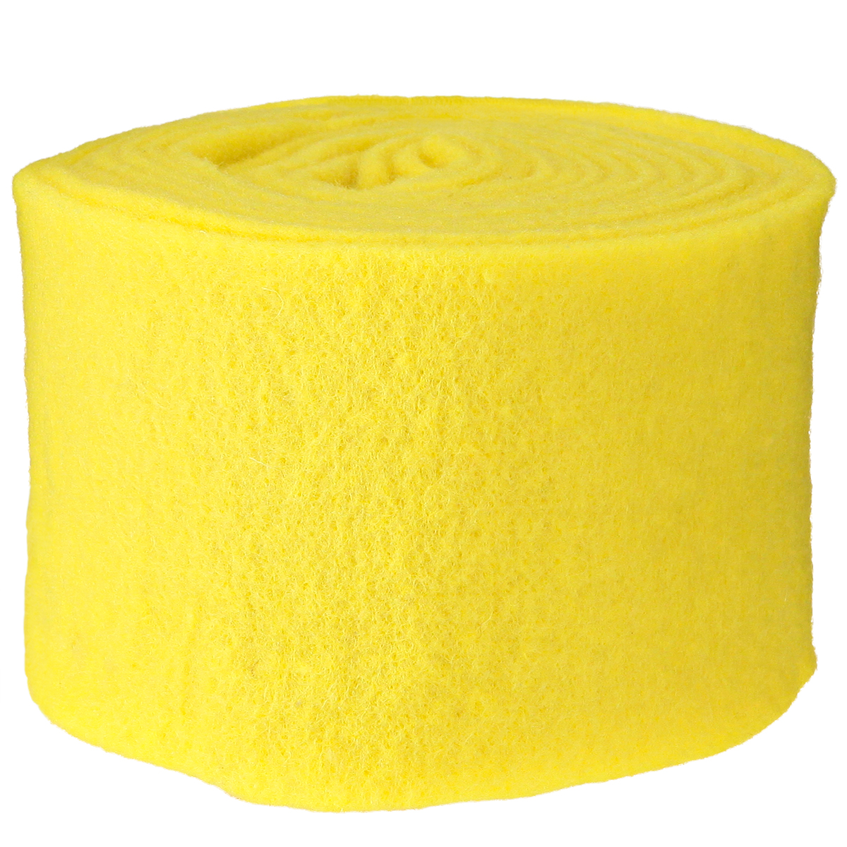 Das Filzband in Gelb ist mit seinen circa 5 Metern zu einer Rolle gewickelt und hat eine Breite von etwa 15 Zentimetern.
