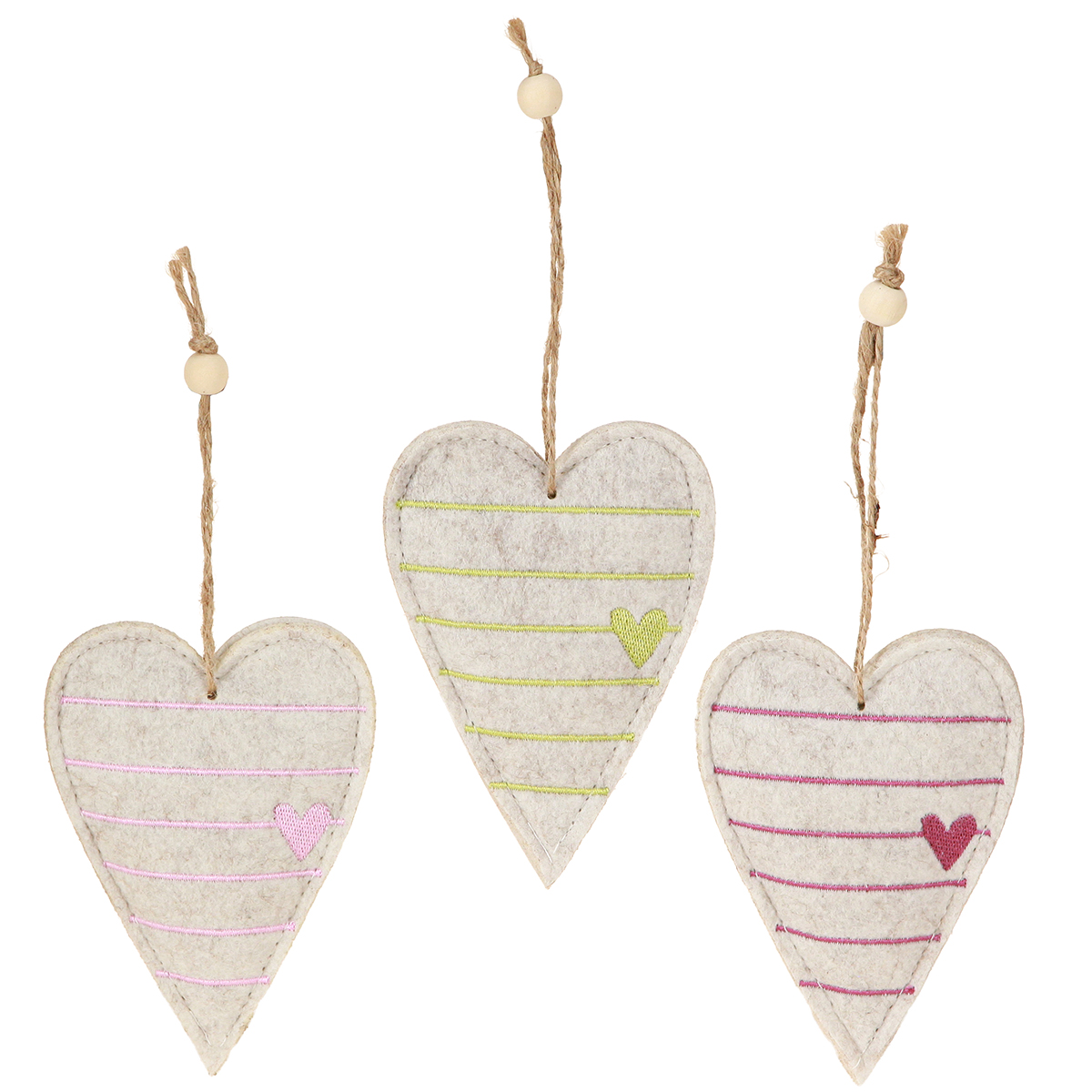 Filz-Herzanhänger im Set – Romantische Deko-Herzen mit Stickerei 12cm 6 St