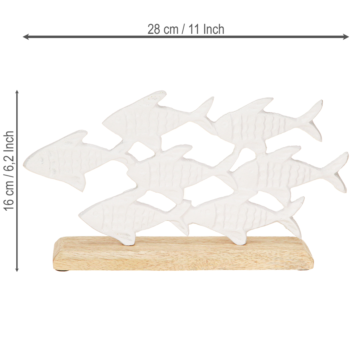 Fischschwarm Deko Fische Weiß Metall Holz Natur 28x16cm