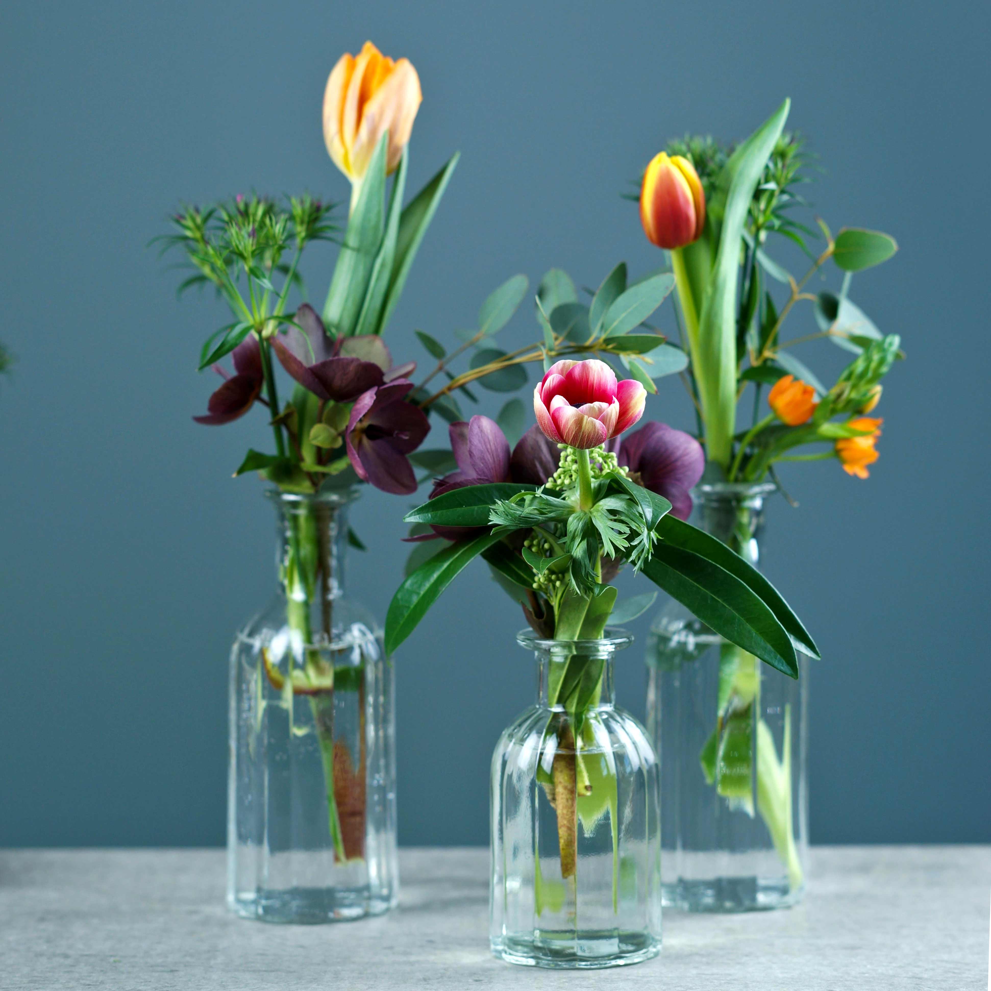 Die kleine, klare Flasche beziehungsweise Vase ist etwa 10,5 Zentimeter groß. Der Gesamtdurchmesser beträgt ungefähr 5,5 Zentimeter; beim Öffnungsdurchmesser sind es circa 2 Zentimeter. Das 6er-Set wird Ihnen in einer transportsicheren Verpackung aus Pappe und Kunststoff geliefert.